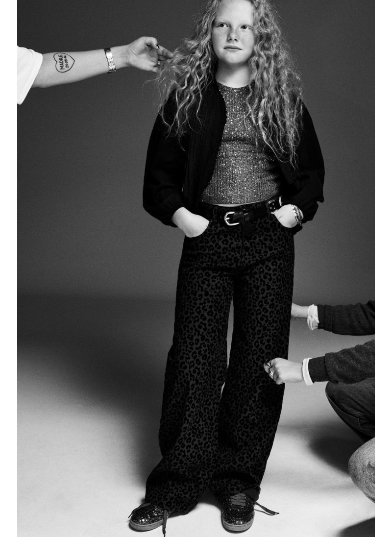 Джинсы в стиле широких брюк с регулируемой внутренней резинкой и застежкой на пуговицы. Передний карман и накладной карман на задней части. Украшены дизайном с животным принтом...