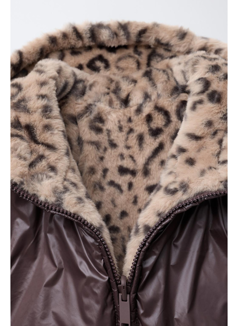 REVERSIBLE ANIMAL PRINT FAUX FUR JACKET