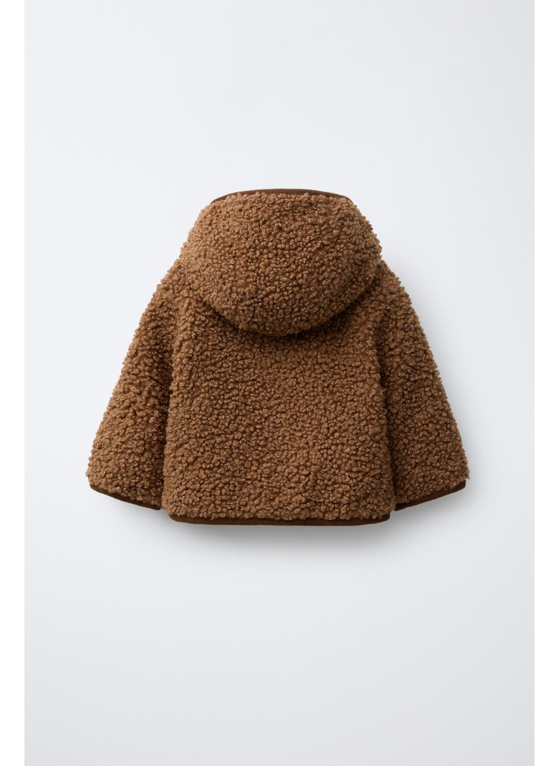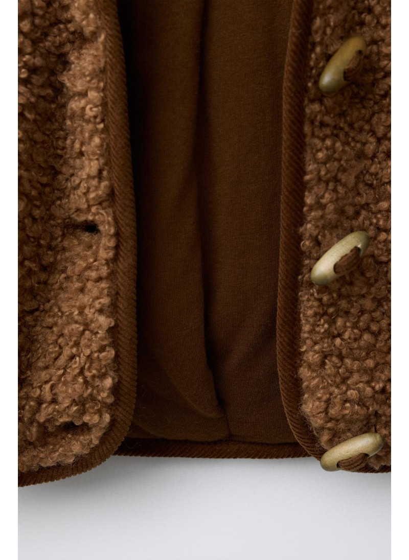 Куртка из искусственной овчины с капюшоном и длинными рукавами. Застежка на навесные петли спереди. Подкладка из поларфлиса.