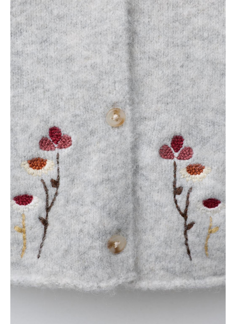 Вязаный кардиган с круглым вырезом и длинными рукавами. Застегивается на пуговицы спереди. Вышитые цветы спереди.