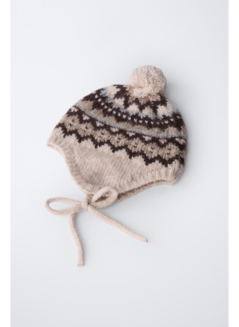 ЖАККАРДОВЫЙ ТРИКОТАЖНЫЙ ЧЕПЧИК С ПОМПОНОМ