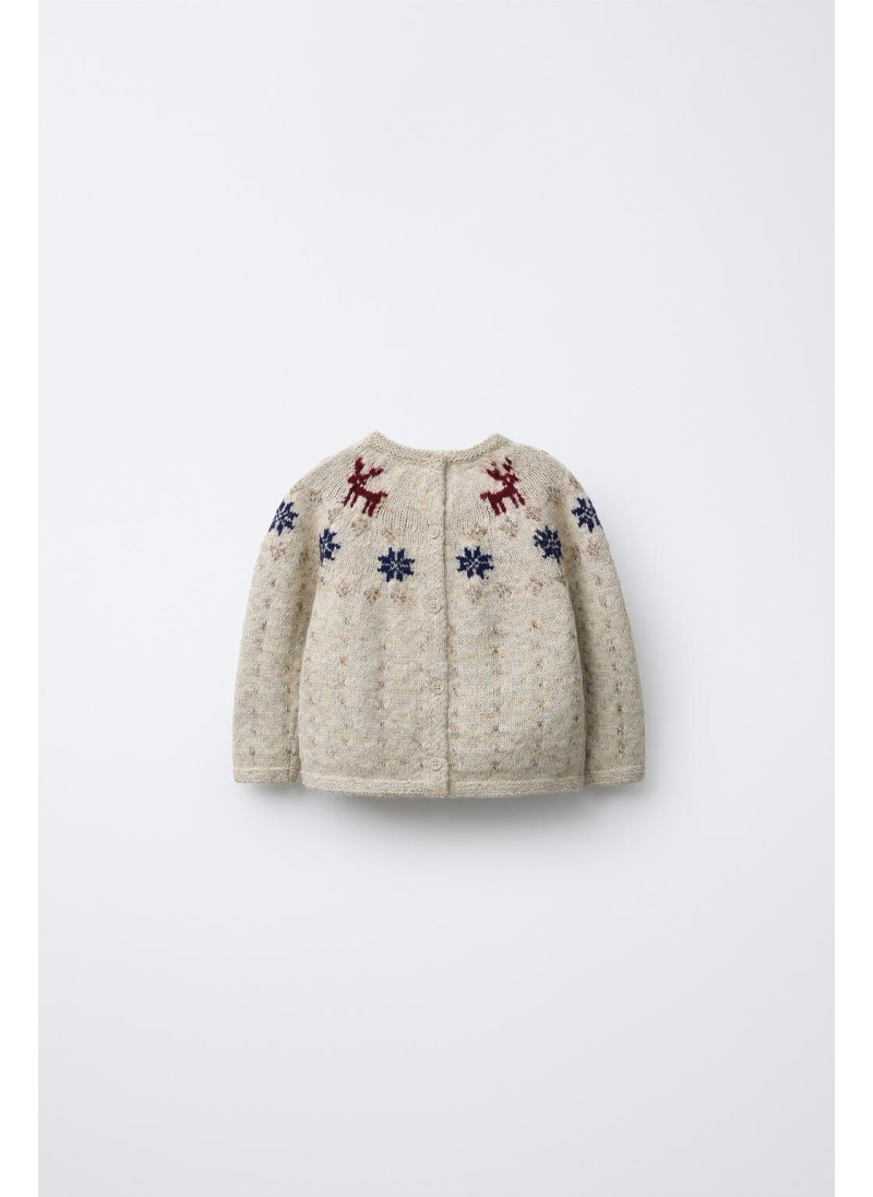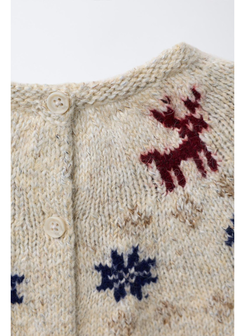 Вязаный свитер с круглым вырезом и длинными рукавами. Застежка на пуговицы сзади. Принт «Звезды и олени»...