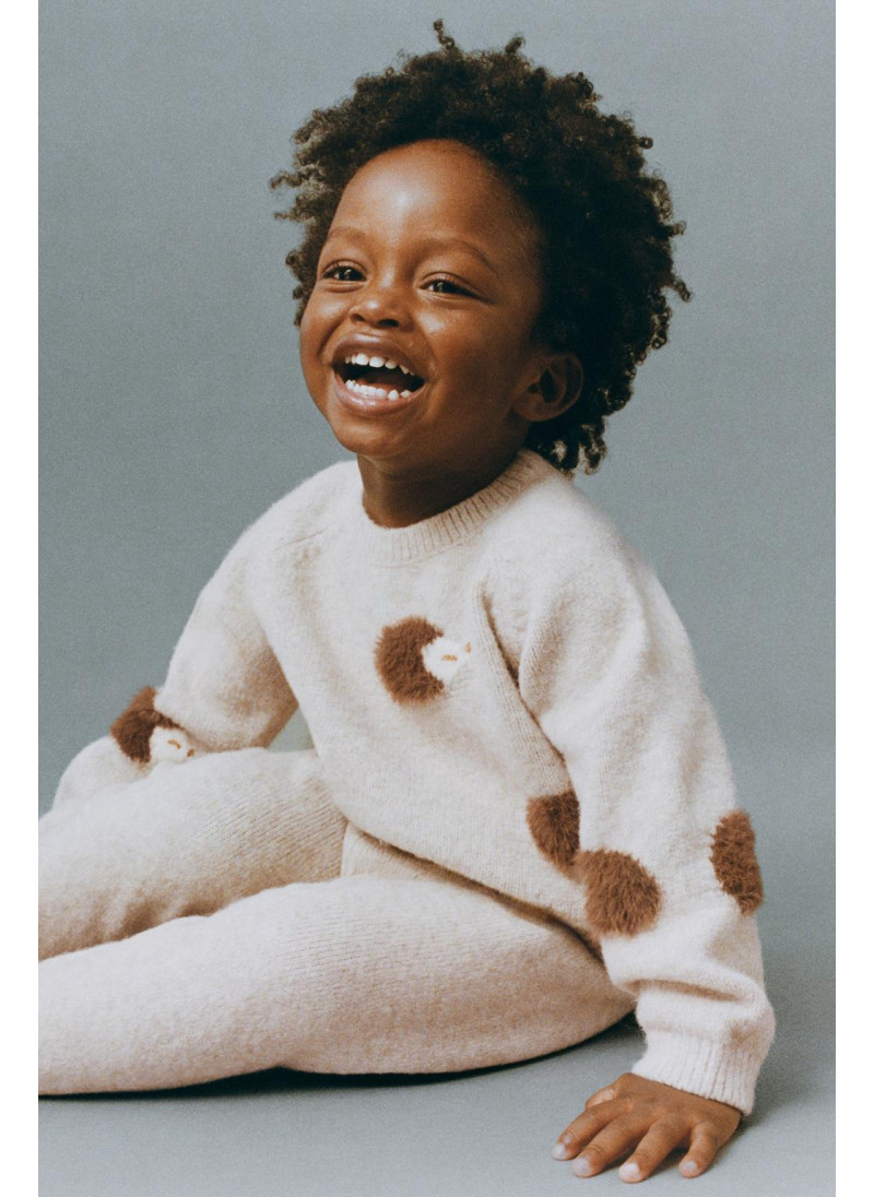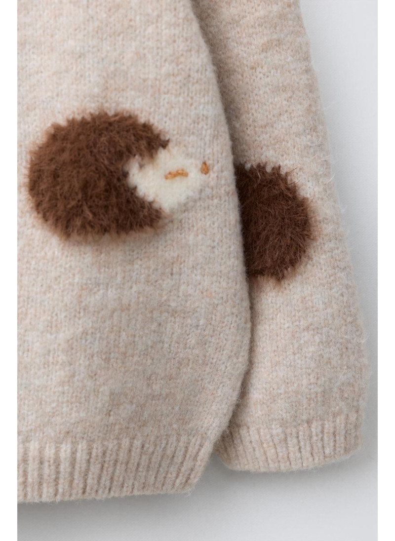 Вязаный свитер с круглым вырезом и длинными рукавами. Застежка на пуговицы сзади. Принт с ежиками.