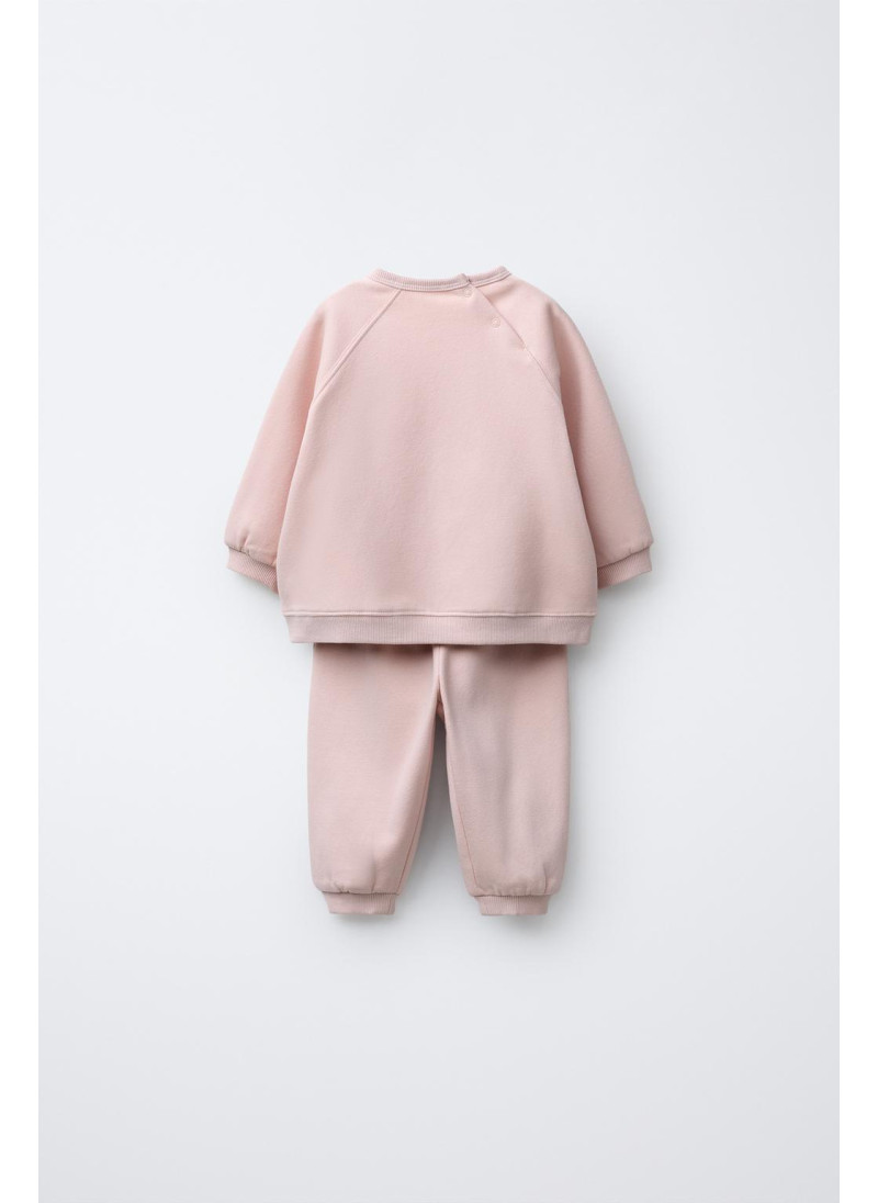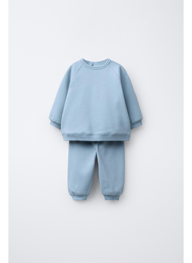 Комплект из двух предметов. Толстовка с круглым вырезом и длинными рукавами. Отделка в рубчик. Застёжка на нажимные кнопки на спинке. Брюки-джоггеры с эластичным поясом и манжетами внизу. Внутренняя сторона с начёсом, тёплая и мягкая. Ткань содержит 68% хлопка...
