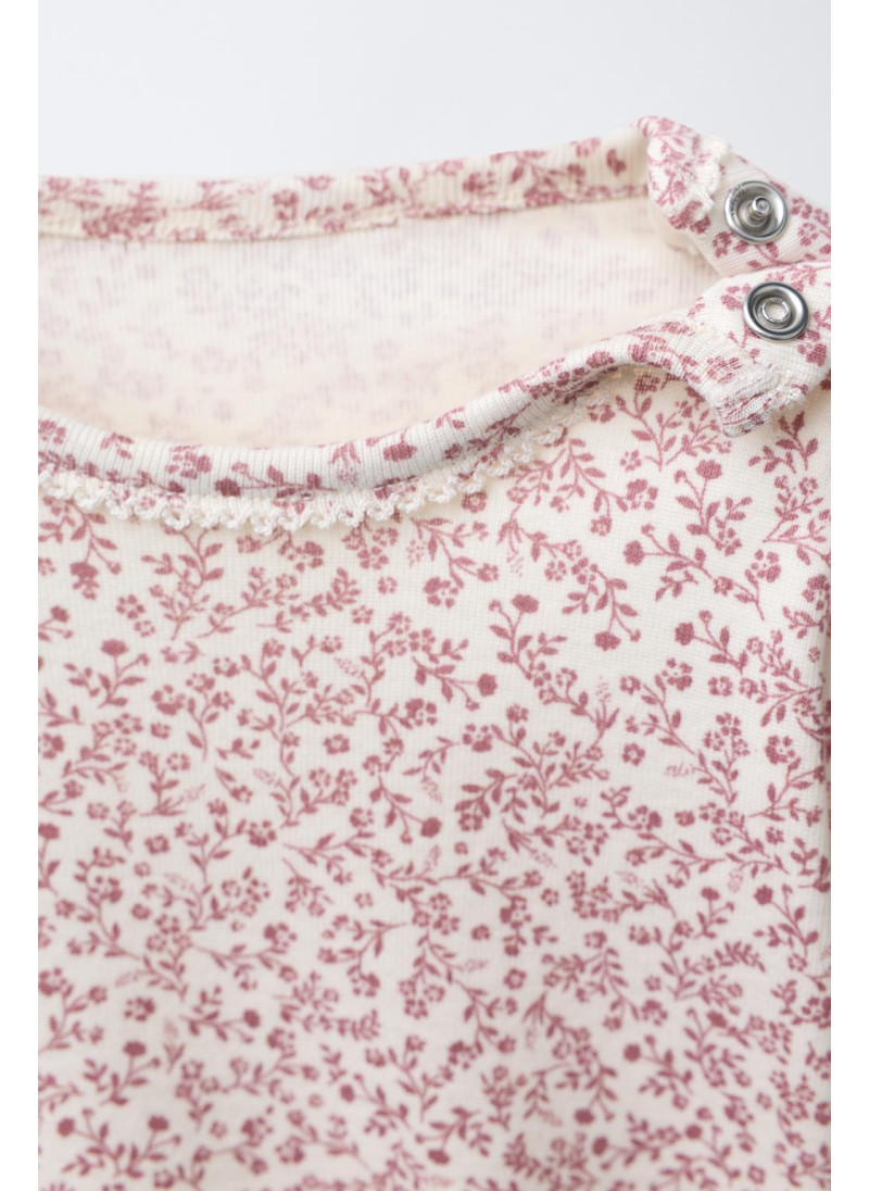 Комплект из двух предметов. Боди с круглым вырезом и длинными рукавами. Застежка на кнопки на плече и внизу. Легинсы с эластичным поясом. Цветочный принт. Ткань 100% хлопок.