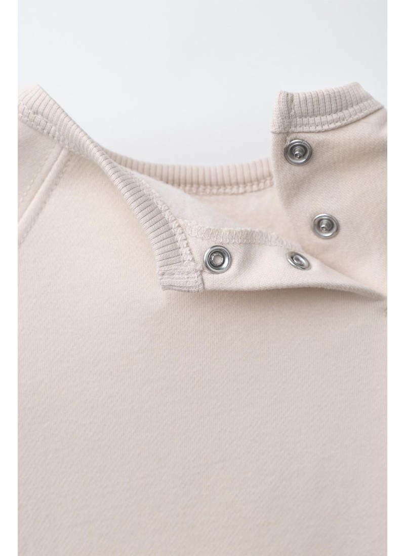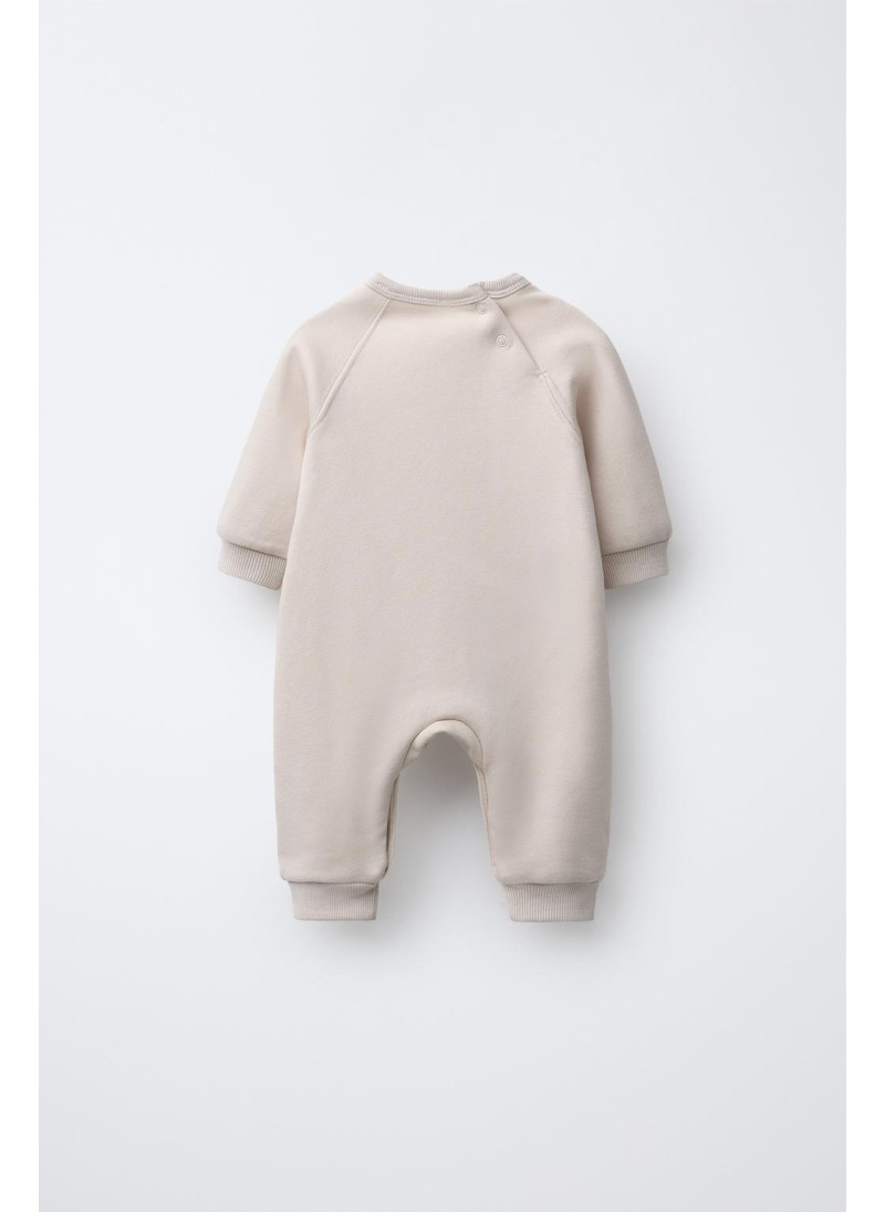 Комбинезон с круглым вырезом и длинными рукавами. Детали в рубчик. Застежка на кнопки на плече и по низу. Низ отделан манжетами. Теплая и мягкая внутренняя ткань с начесом. Ткань: 68% хлопок.