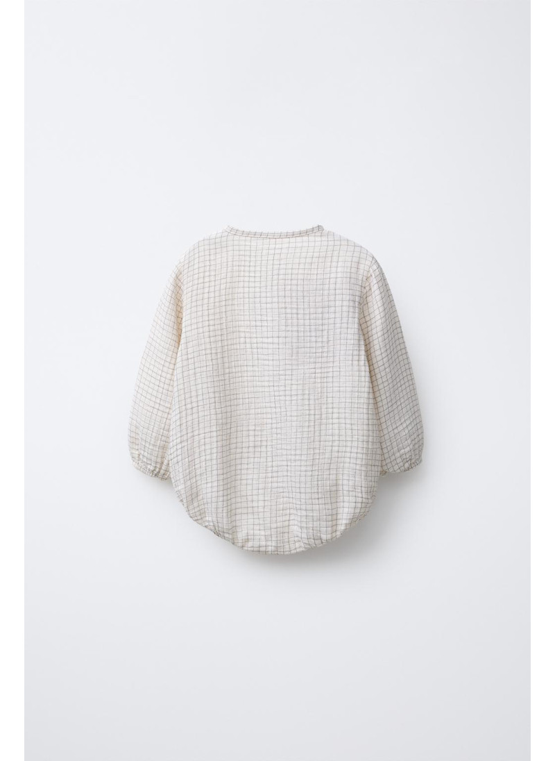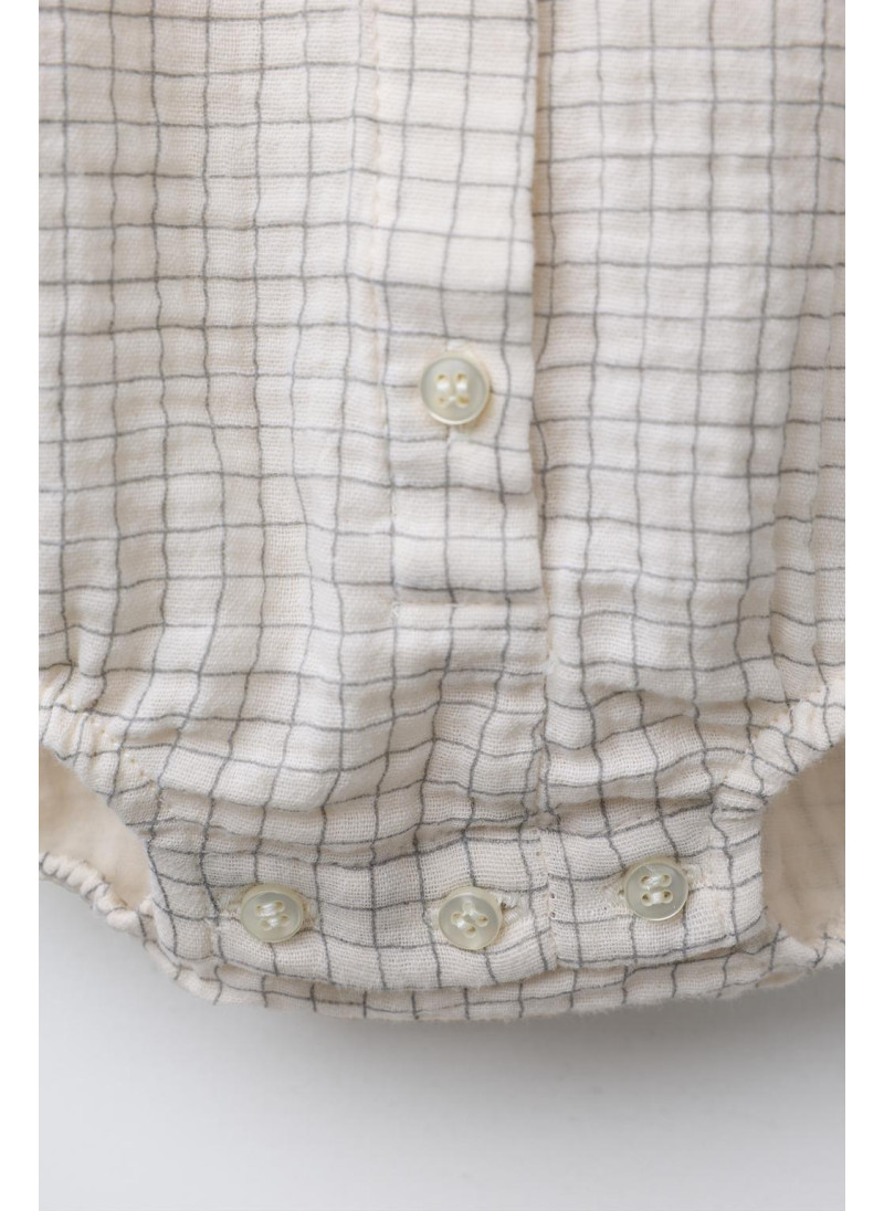 Боди с круглым вырезом и длинными рукавами на резинке. Застежка на пуговицы спереди. Принт в клетку. Ткань из 100% хлопка.