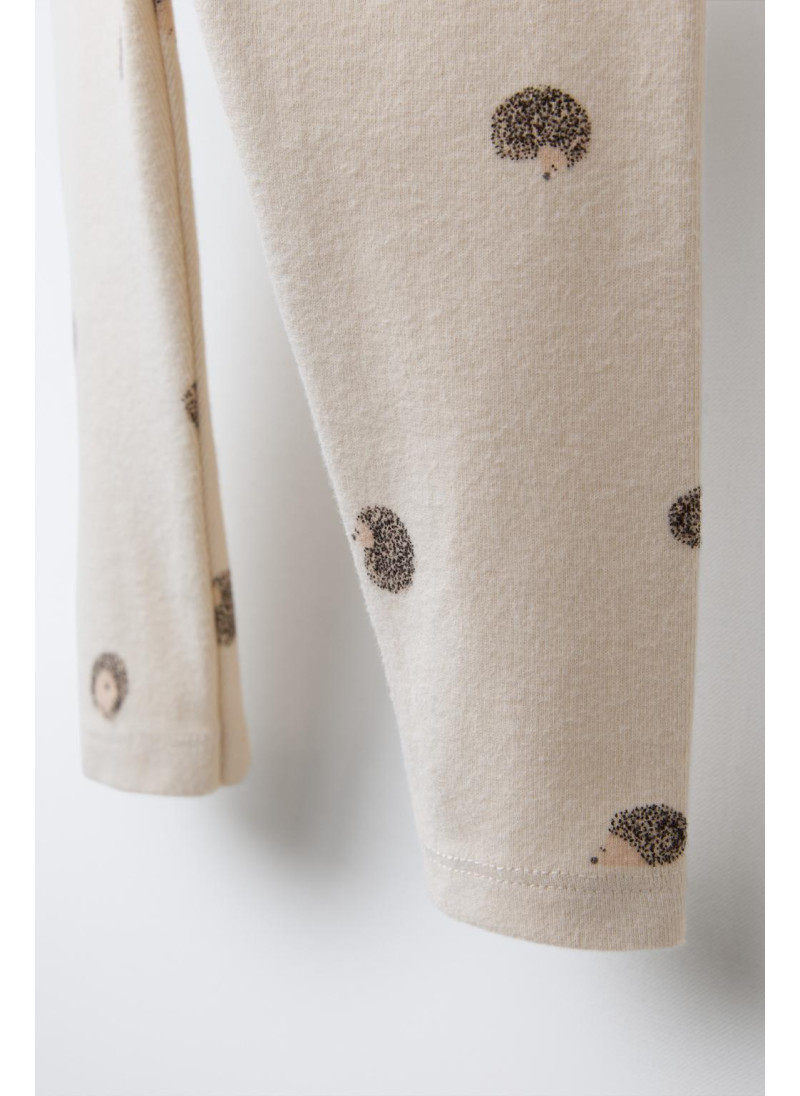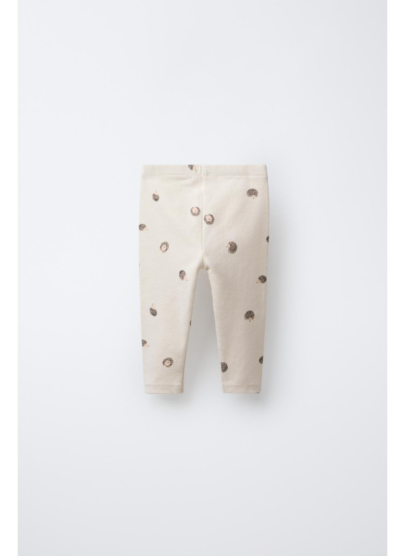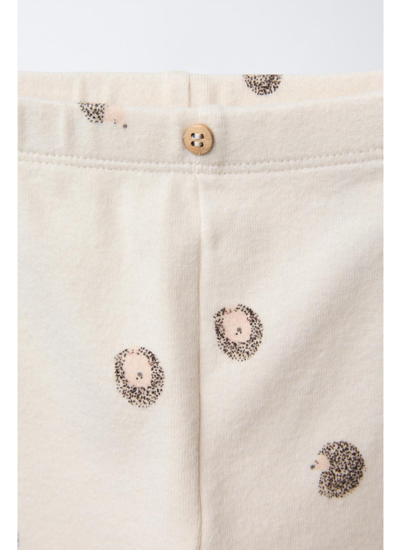 Легинсы с эластичным поясом и декоративной пуговицей спереди. Принт «Ежики». Тёплая ткань, 97% хлопка.