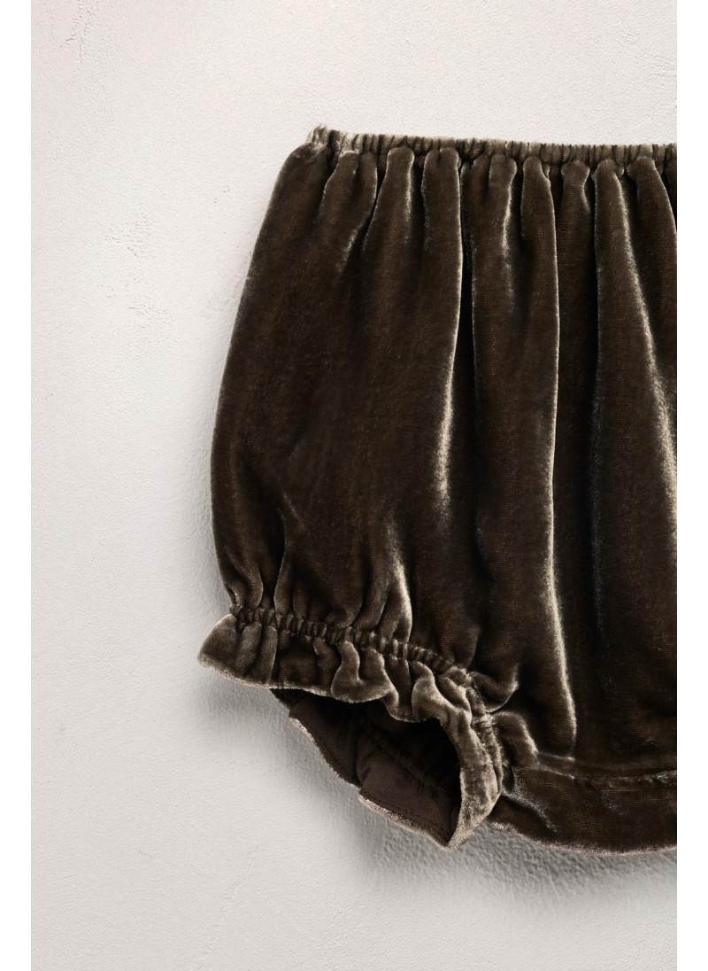 Комбинезон из вельвета с эластичным поясом. Оборка по низу. Ткань с добавлением 18% шелка.