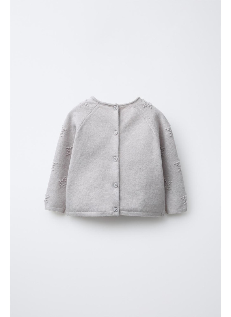 Вязаный джерси с круглым вырезом и длинными рукавами. Застежка на пуговицах сзади. Вышитые звезды.