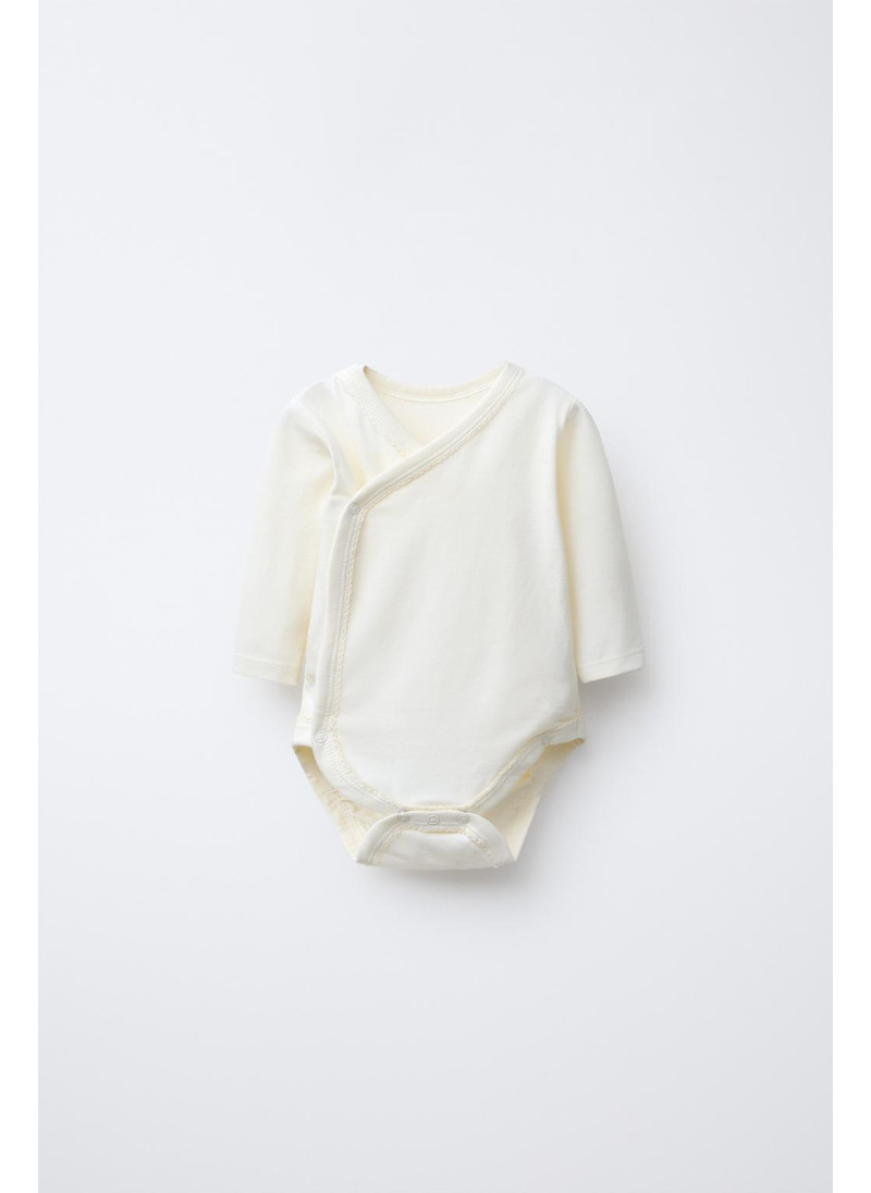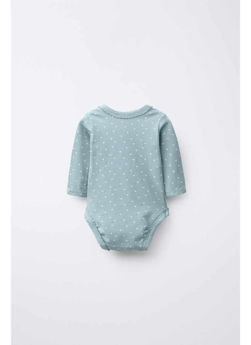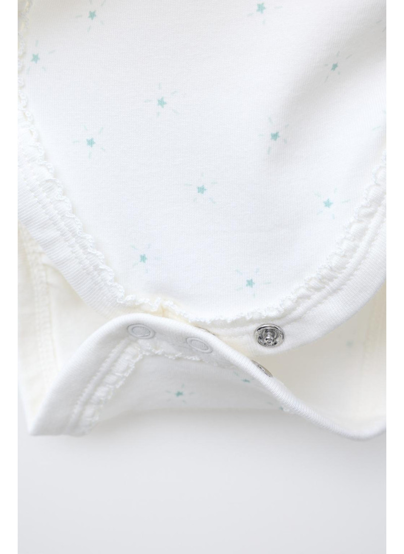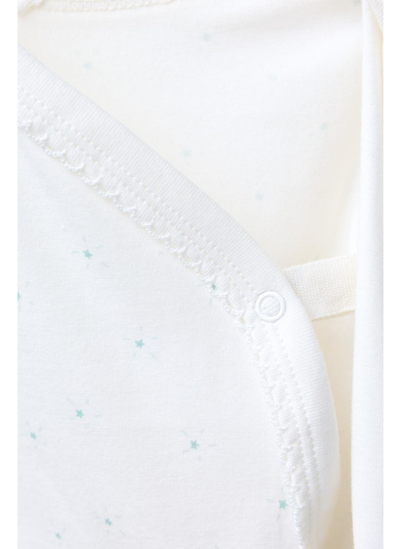 Набор из трех боди с воротником-кимоно и длинными рукавами. Перекрестная застежка спереди на кнопки и снизу. Принт со звездами.