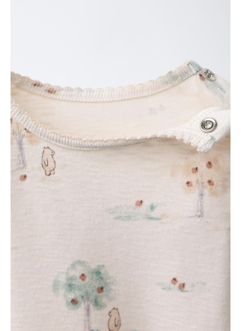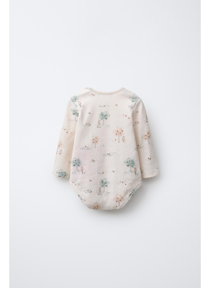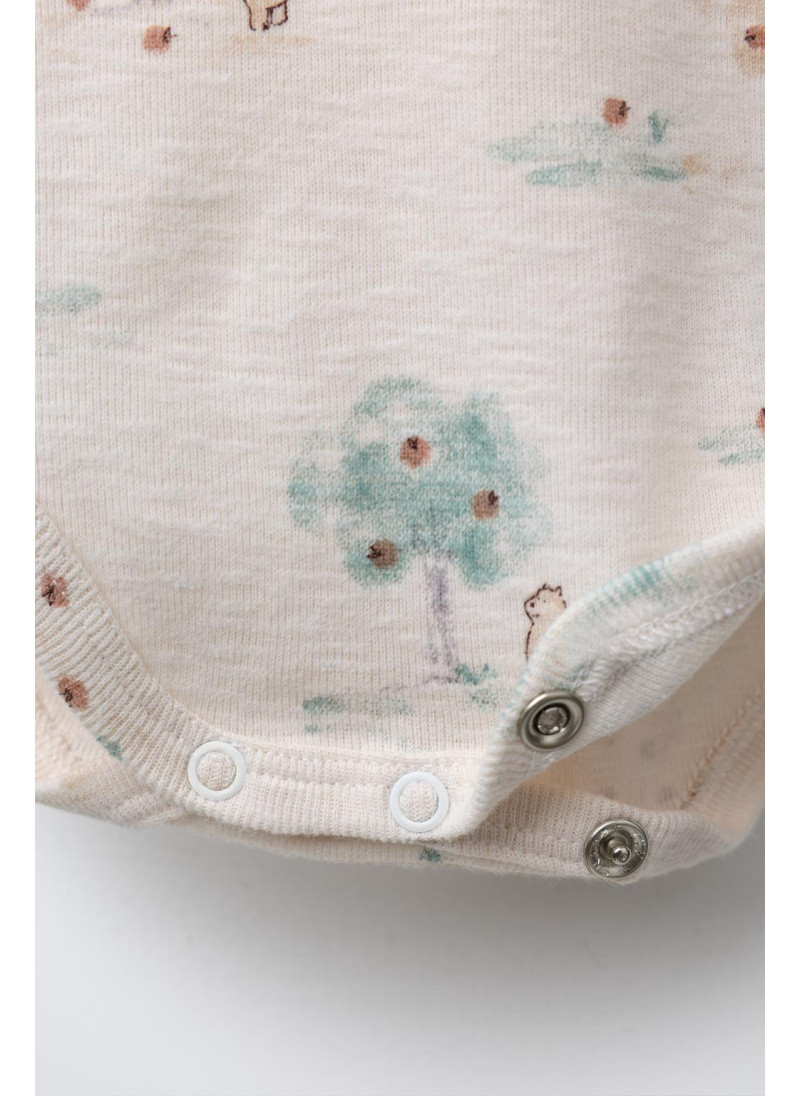 Боди с круглым вырезом и длинными рукавами. Застегивается на кнопки на плече и снизу. Принт «Лес». Ткань: 100% хлопок.