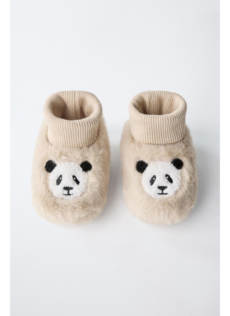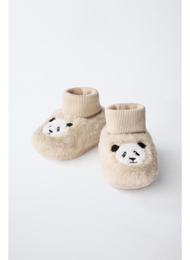 Носочные тапочки-ботиночки с вышитой деталью панды...