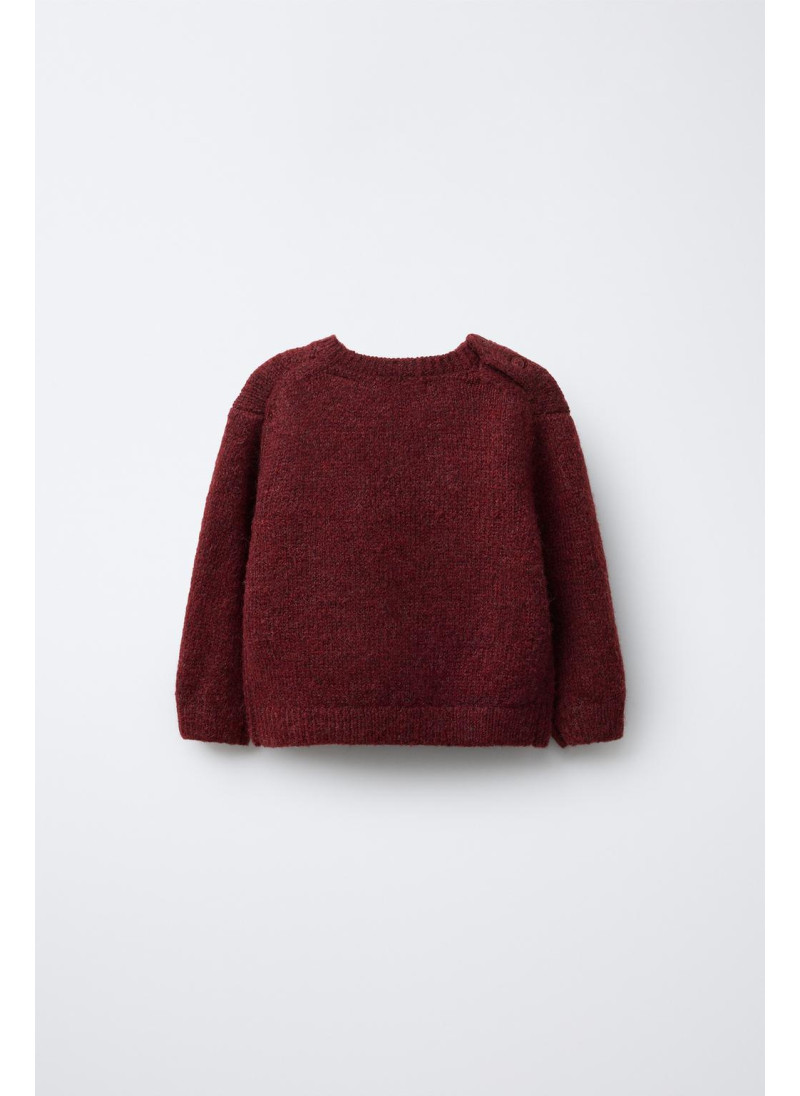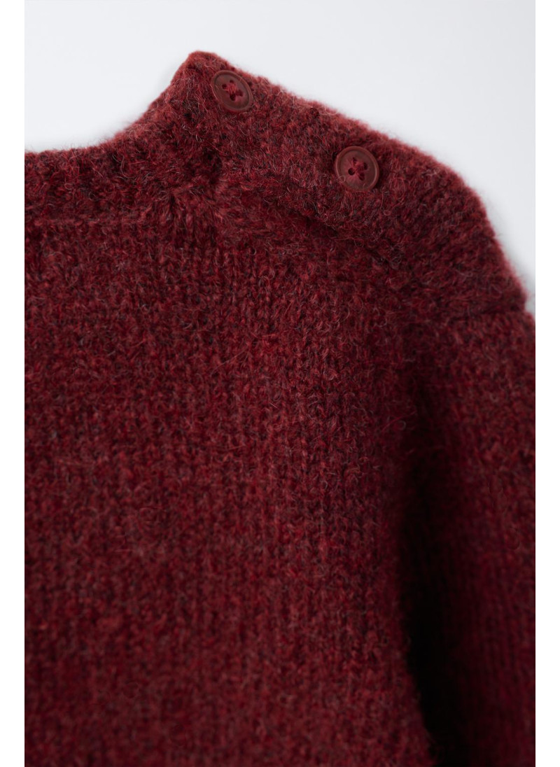 Вязаный джемпер с круглым вырезом и длинными рукавами. Застежка на пуговицы на плече. Вышитый олень спереди.