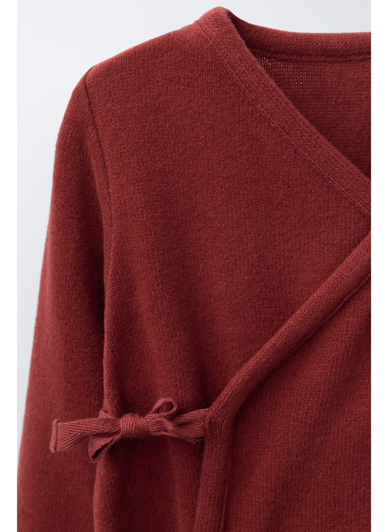 Длинный комбинезон из мягкой ткани с V-образным вырезом и длинными рукавами. Перекрестная застежка спереди на завязках и внутренняя кнопка. Ткань с 48% хлопка.