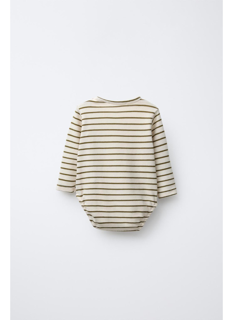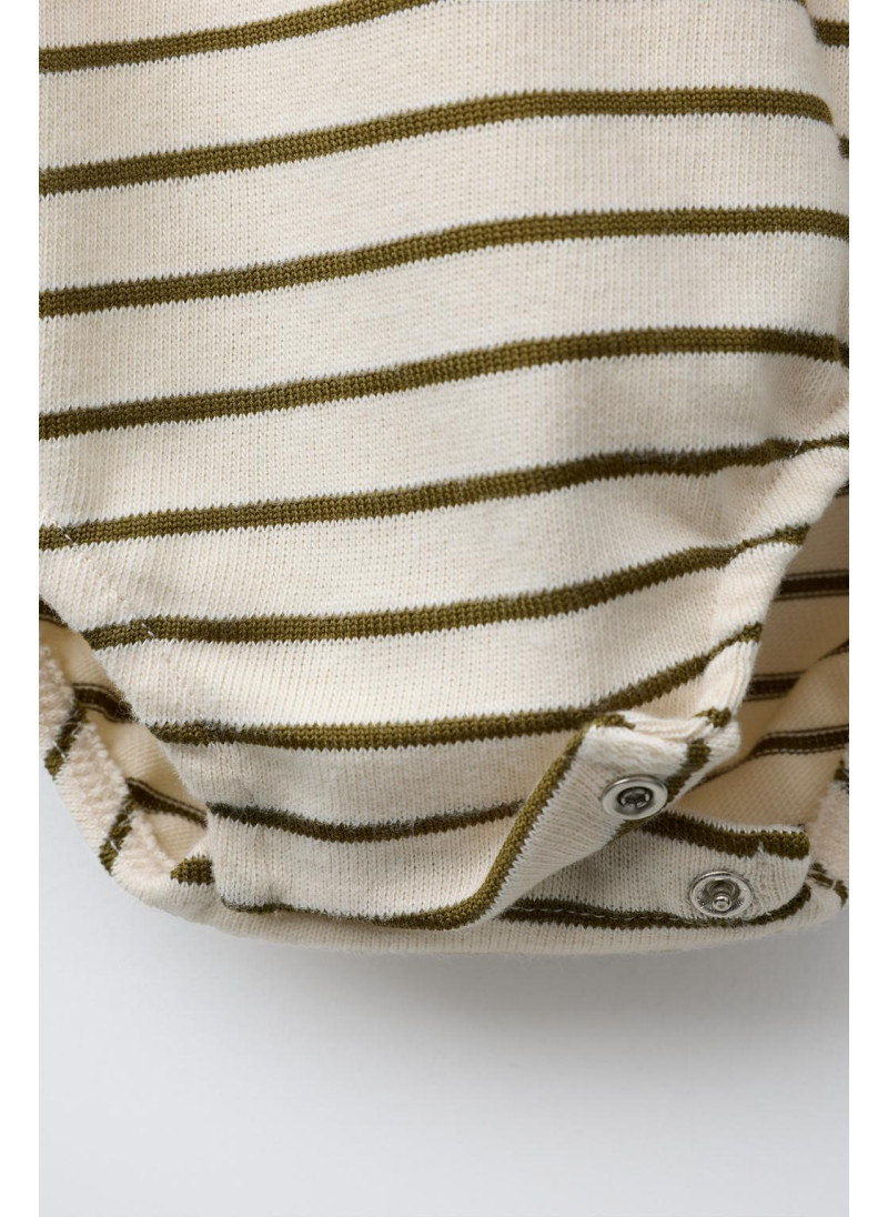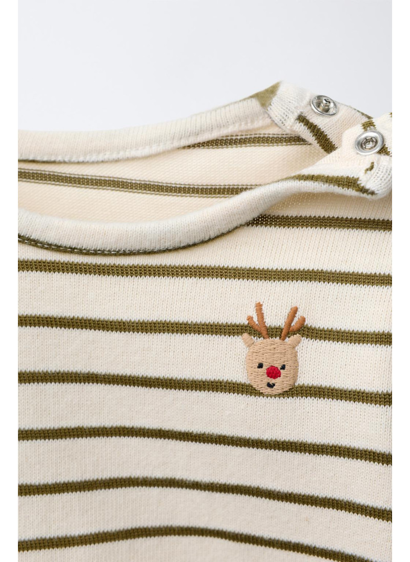 Комбинезон с длинным рукавом и круглым вырезом. С застежкой на кнопках на плече и внизу. Полосатый принт и деталь с вышитым оленем на груди. Ткань из 82% хлопка...