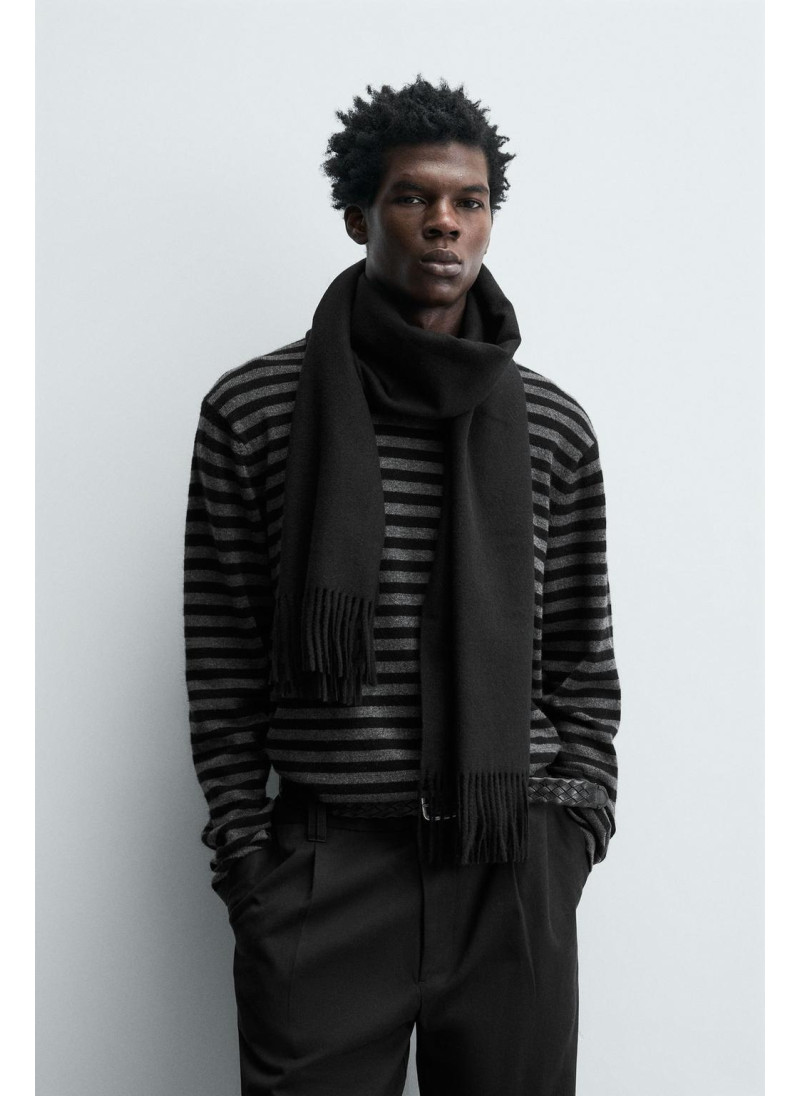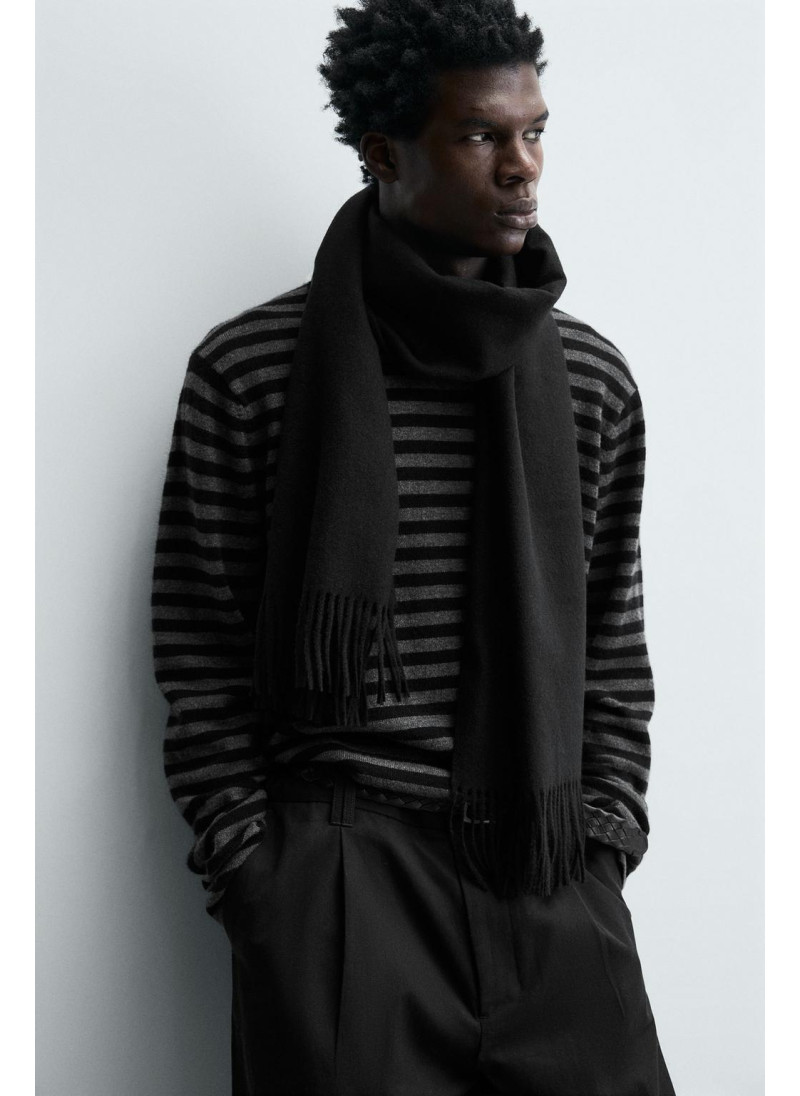 Шарф из мягкой ткани с приятным на ощупь покрытием. Отделан бахромой.