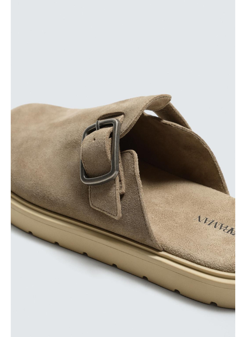 Клоги изготовлены из кожи с замшевой отделкой. Металлическая деталь-пряжка на мыске. Круглый носок. Массивная подошва контрастного цвета.