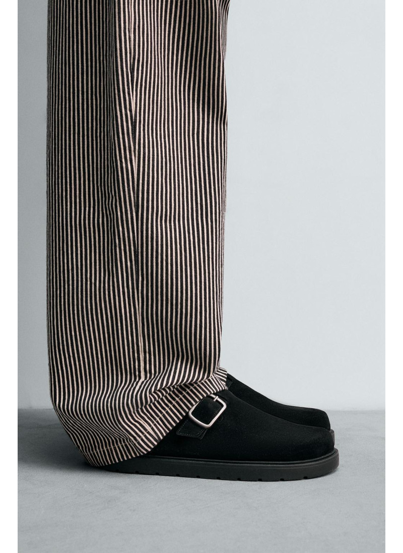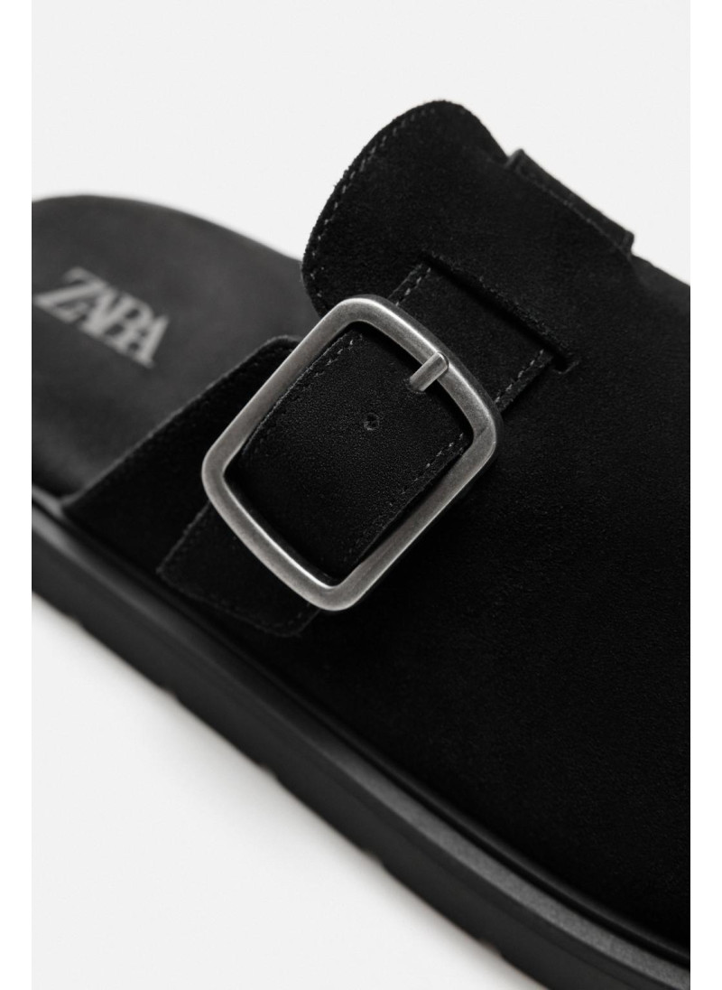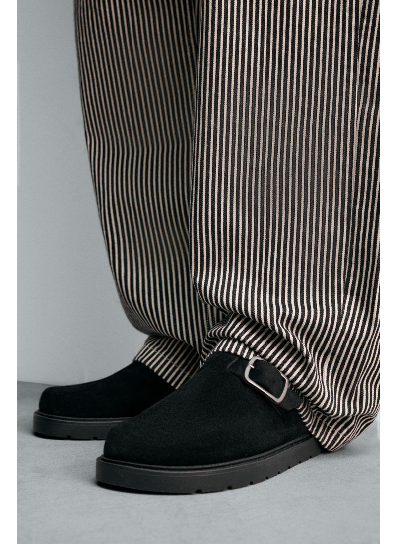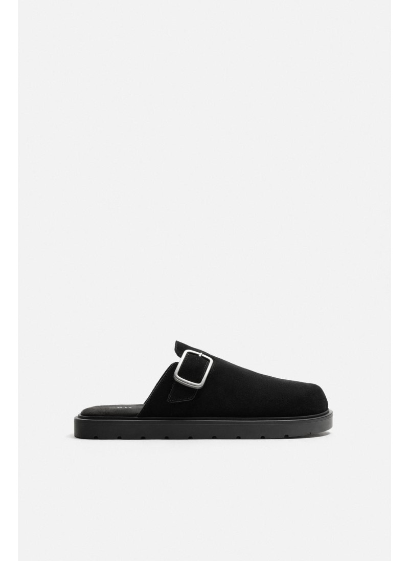 Клоги изготовлены из кожи с замшевой отделкой. Металлическая деталь-пряжка на мыске. Круглый носок. Массивная подошва контрастного цвета...