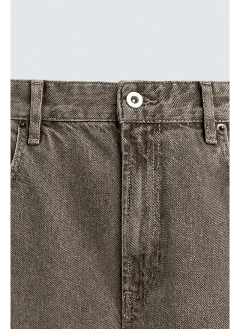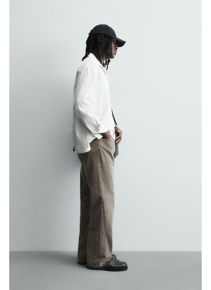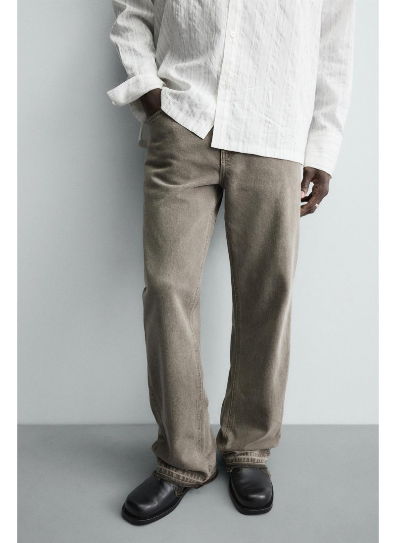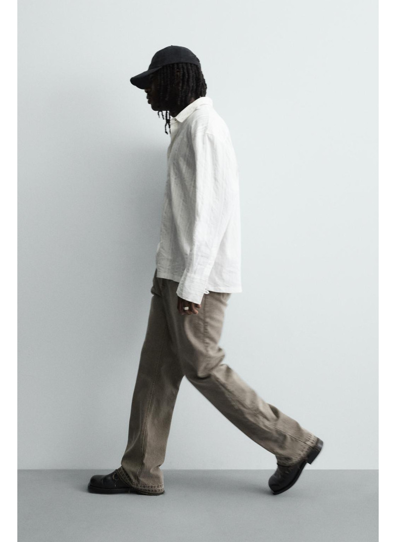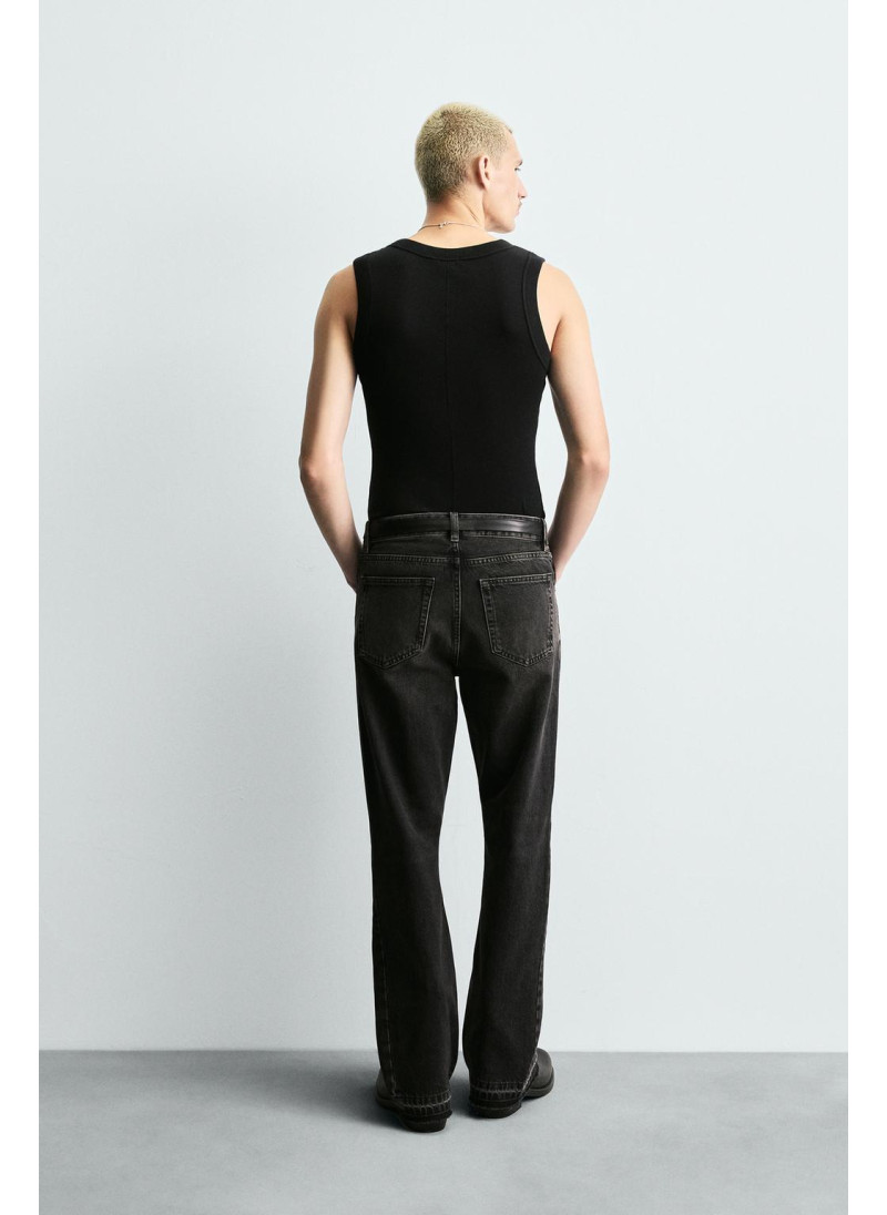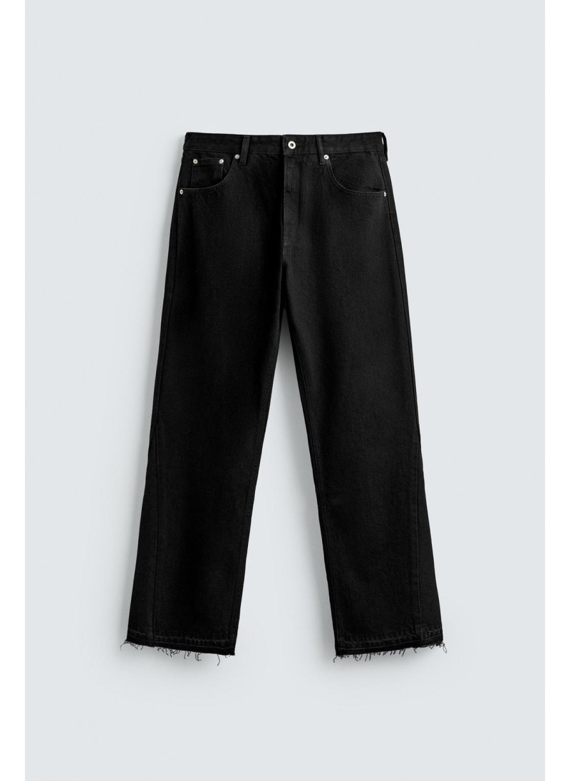 Облегающие сверху и расширяющиеся книзу с колена. Средняя посадка. Жесткая ткань. Джинсы с расклешенными брючинами из хлопкового денима. Пять карманов. Неровный нижний край. Молния и пуговицы на ластовице.