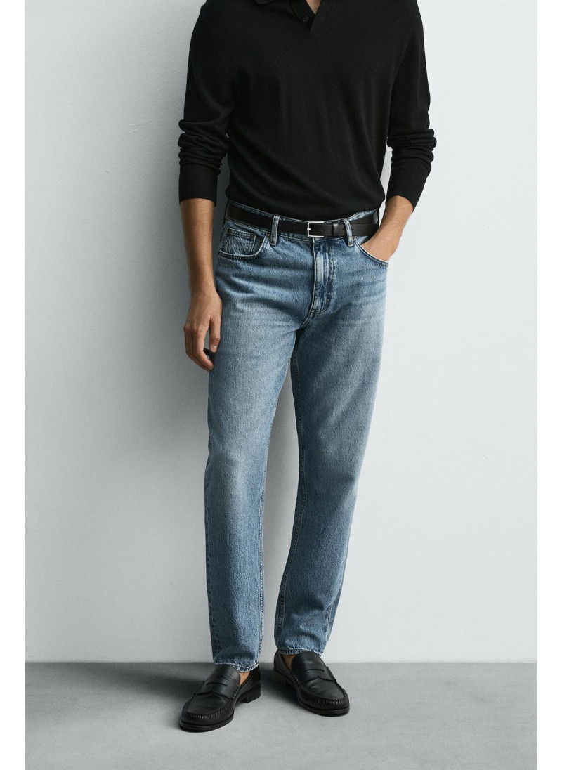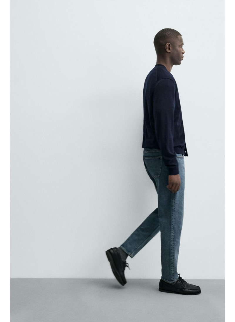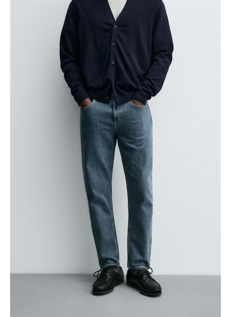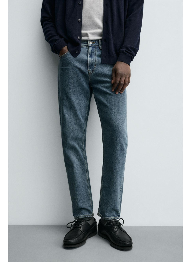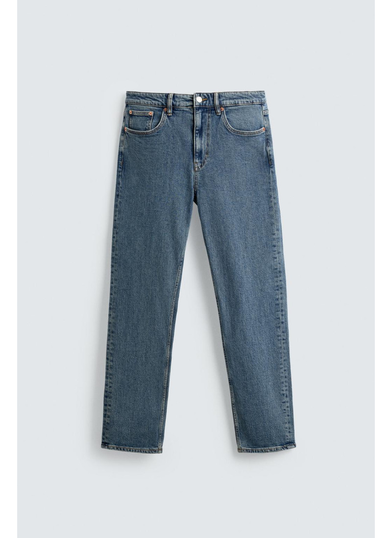 Джинсы стройного кроя с средней посадкой, облегающие бедра и бедра, с ногой, которая постепенно зауживается к щиколотке. Изготовлены из слегка эластичного хлопкового денима. Имеют дизайн с пятью карманами, эффект стирки и застежку на молнию с пуговицей...