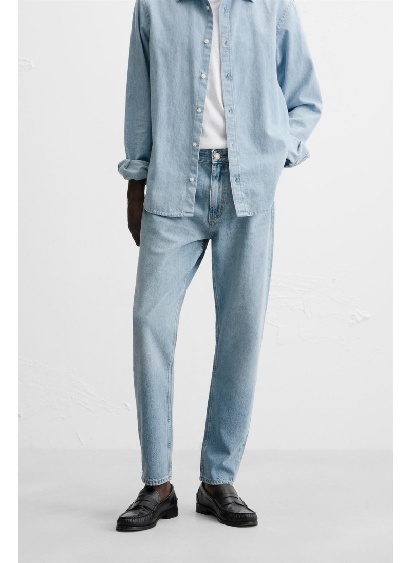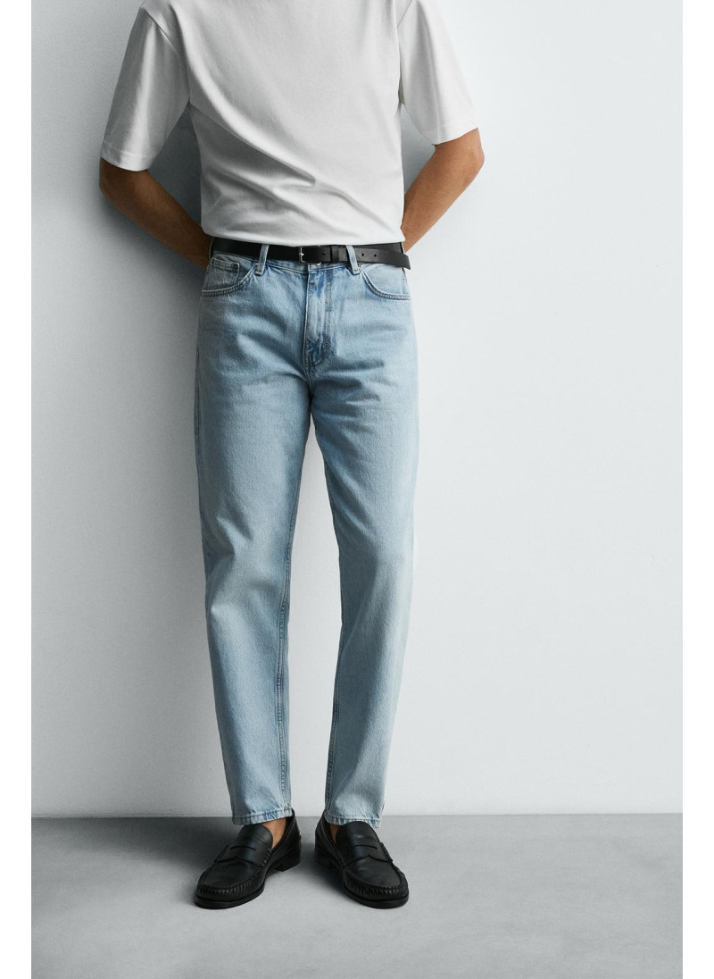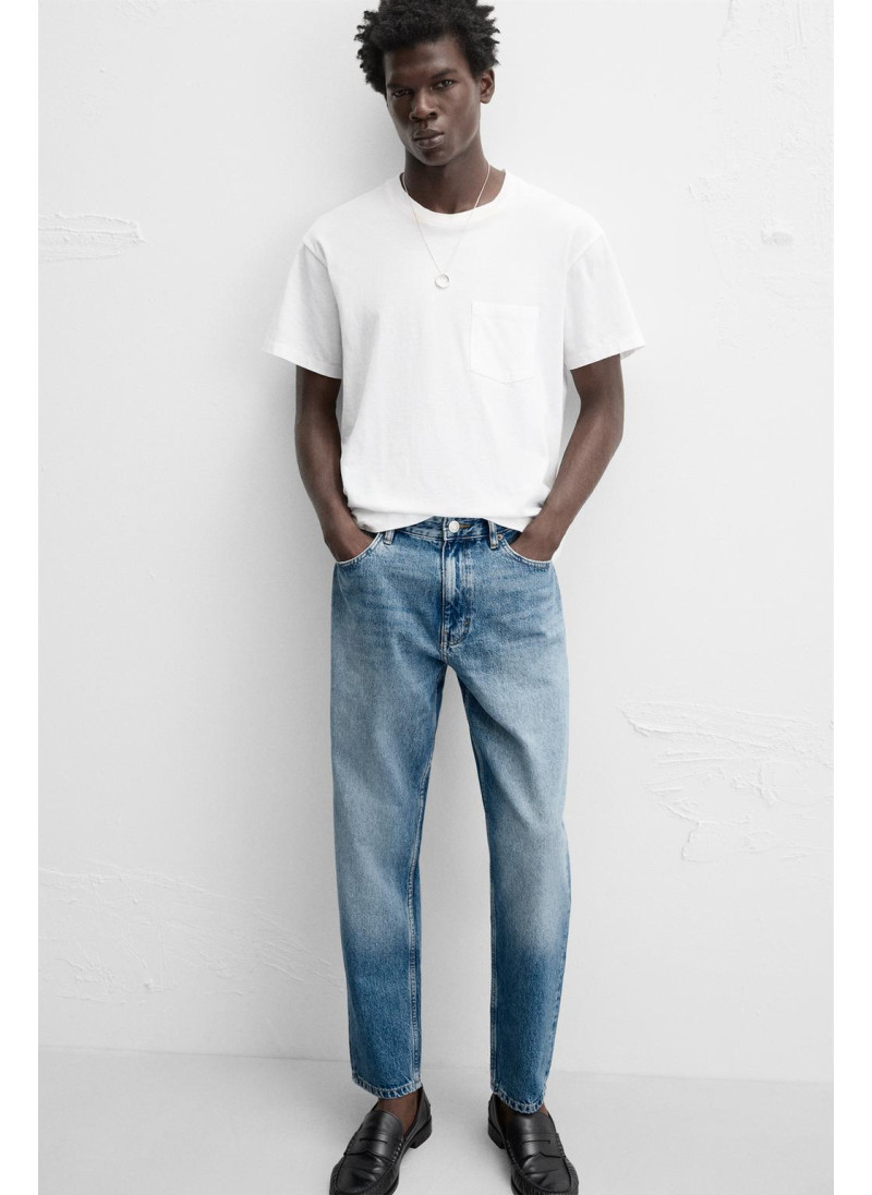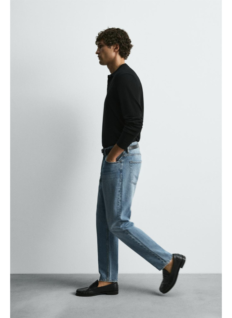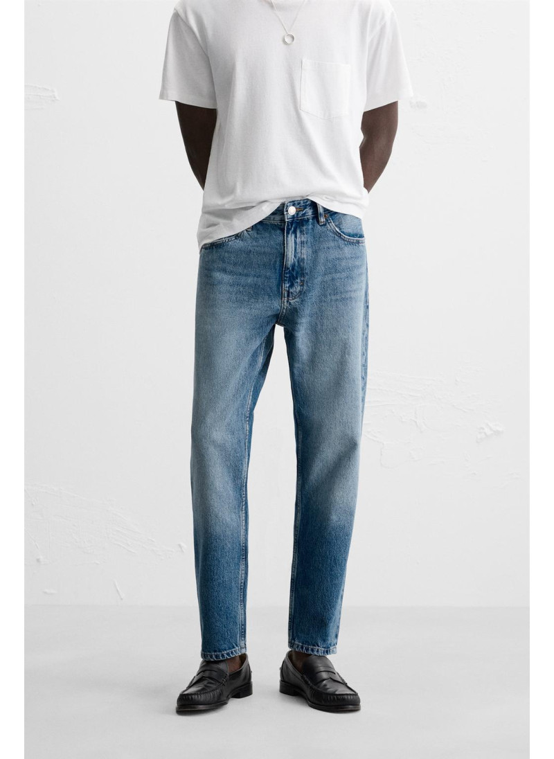 Джинсы стройного кроя с средней посадкой, облегающие бедра и бедра, с ногой, которая постепенно зауживается к щиколотке. Изготовлены из слегка эластичного хлопкового денима. Имеют дизайн с пятью карманами, эффект стирки и застежку на молнию с пуговицей...