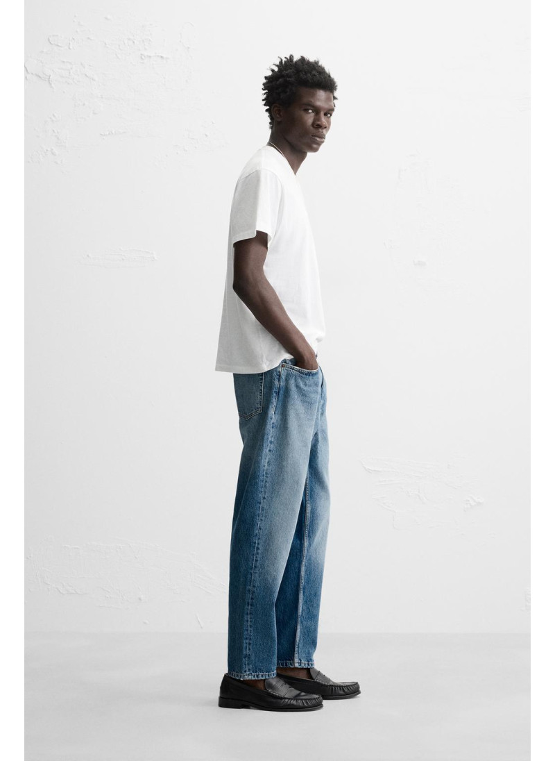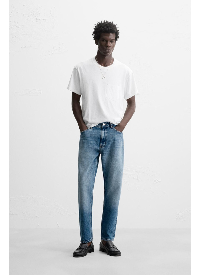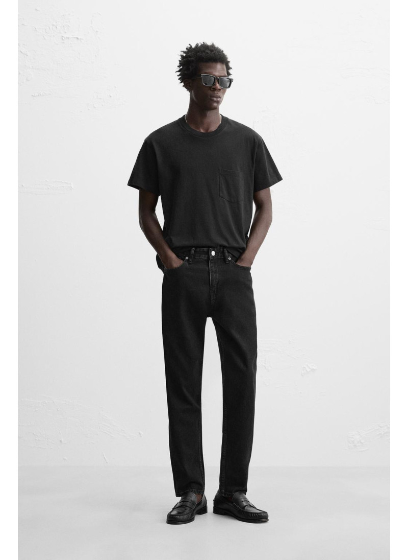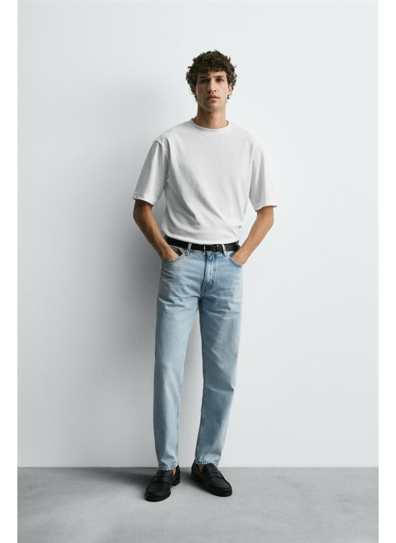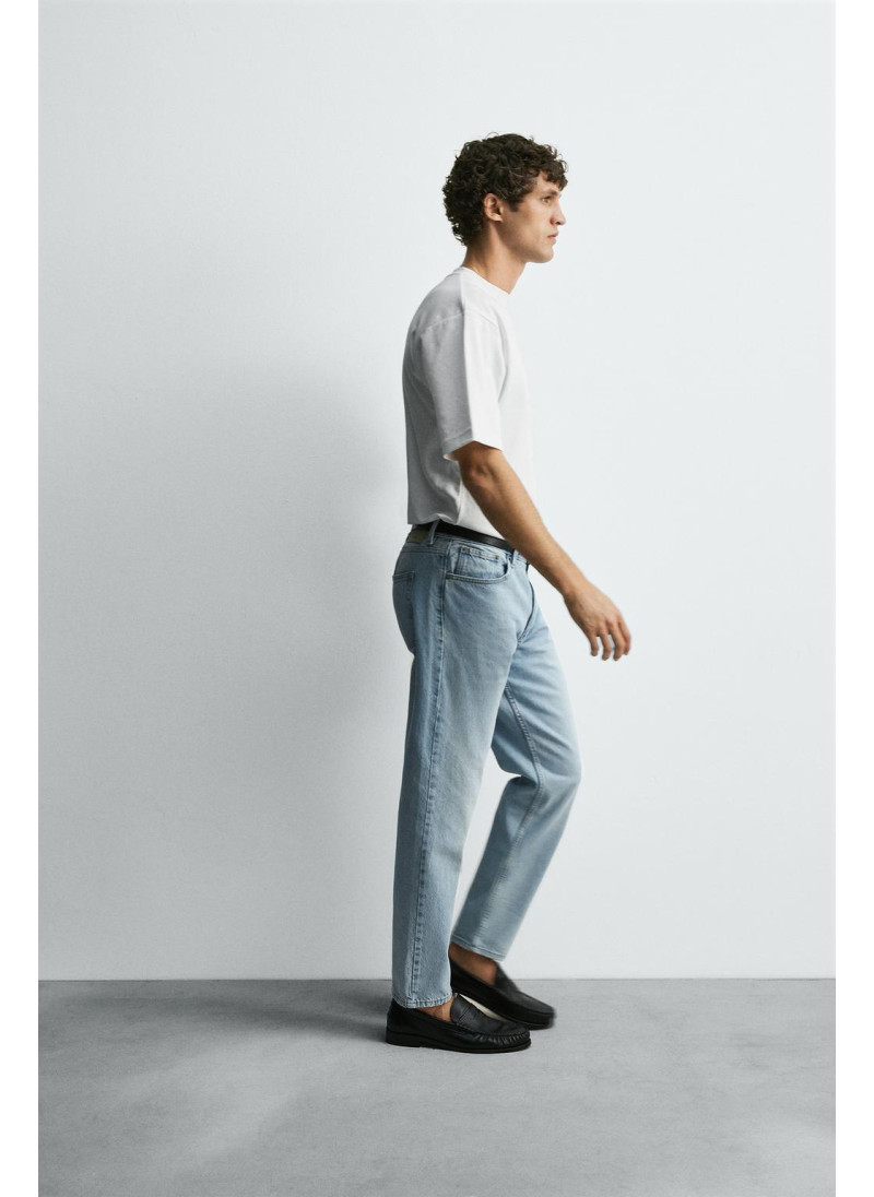 Джинсы стройного кроя с средней посадкой, облегающие бедра и бедра, с ногой, которая постепенно зауживается к щиколотке. Изготовлены из слегка эластичного хлопкового денима. Имеют дизайн с пятью карманами, эффект стирки и застежку на молнию с пуговицей...