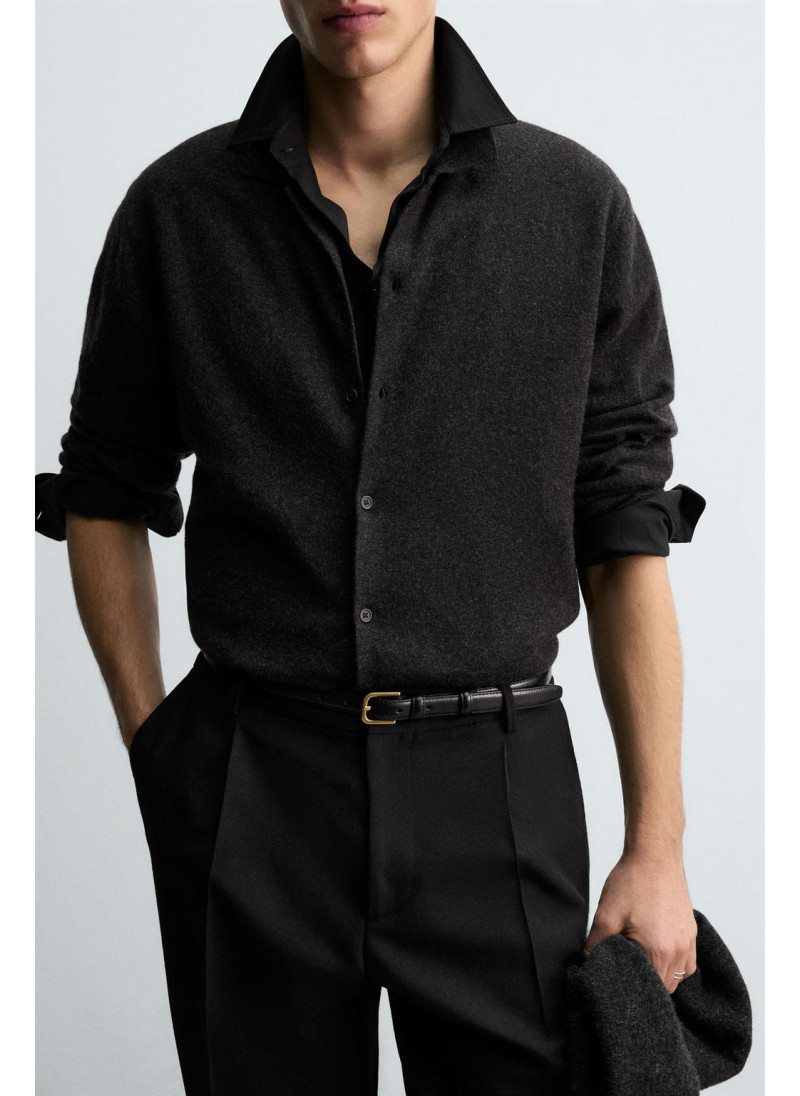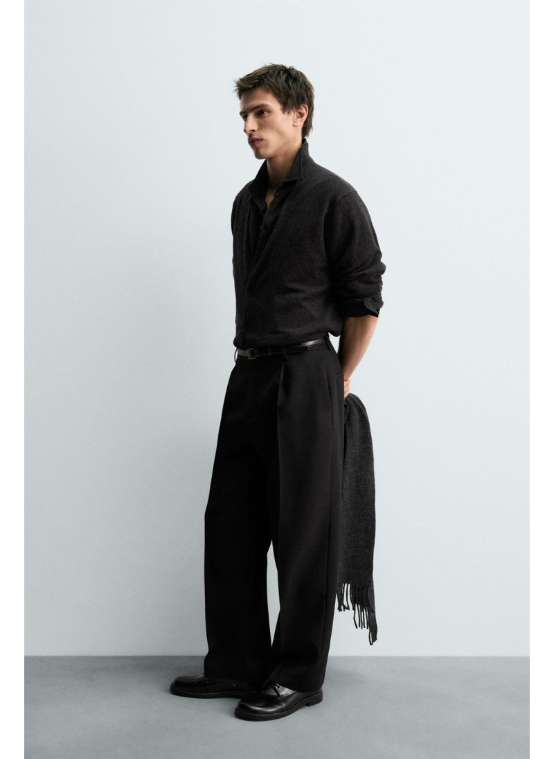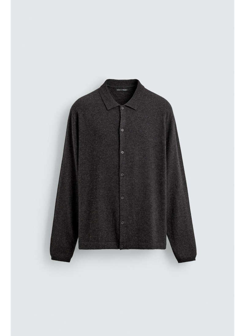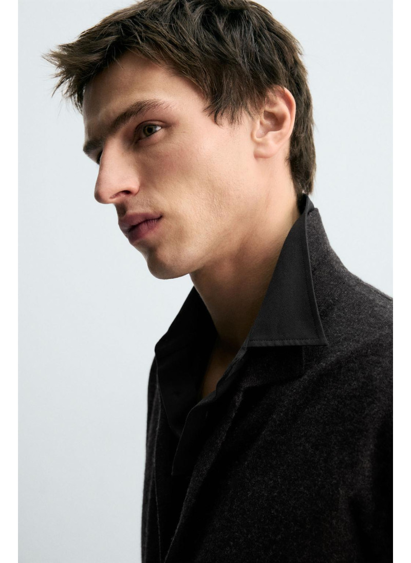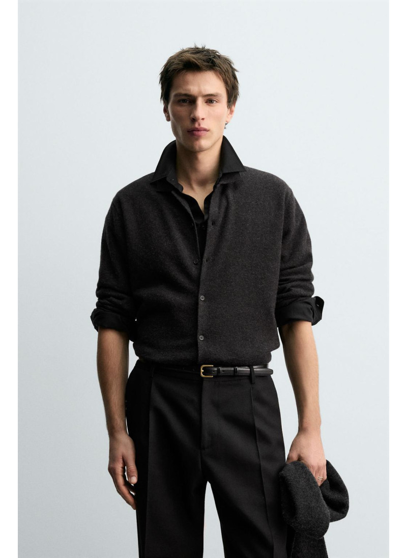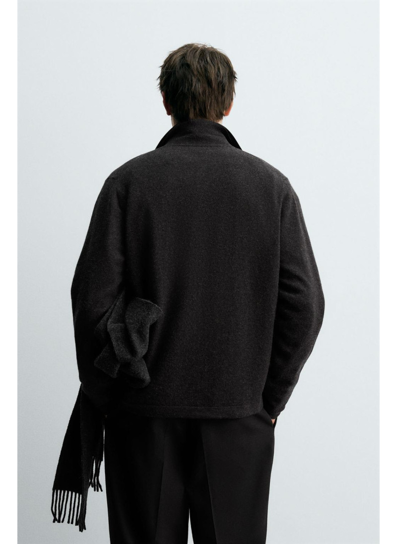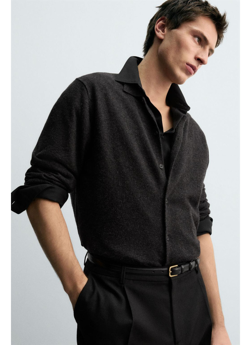 Кардиган свободного кроя, связанный из шерстяной пряжи. С лацканом и длинными рукавами. Ребристые манжеты. Застежка на пуговицы.