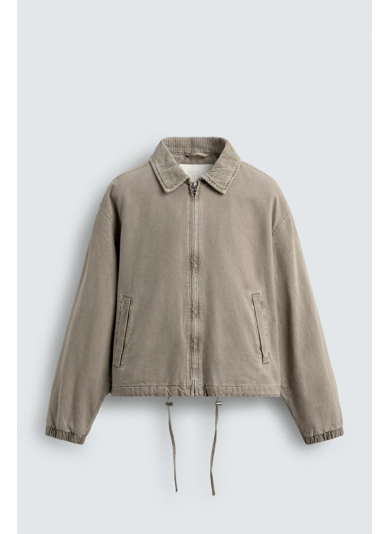 Куртка классического кроя из легкого хлопкового холлофайбера с утеплителем. Оснащена тонким воротником из вельвета в тон, длинными рукавами с манжетами на резинке, накладными карманами на бедрах, внутренним карманом, регулируемой шнуровкой по низу и эффектом потертости. Застегивается на молнию...