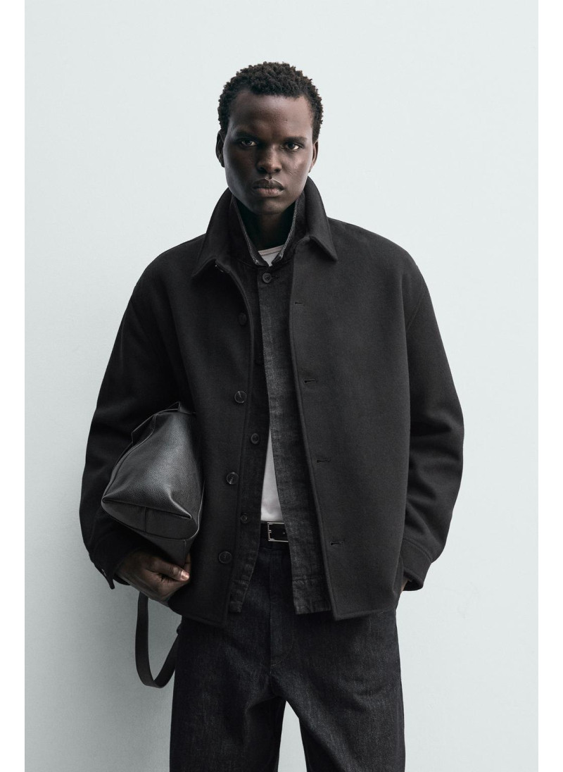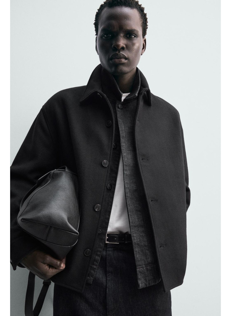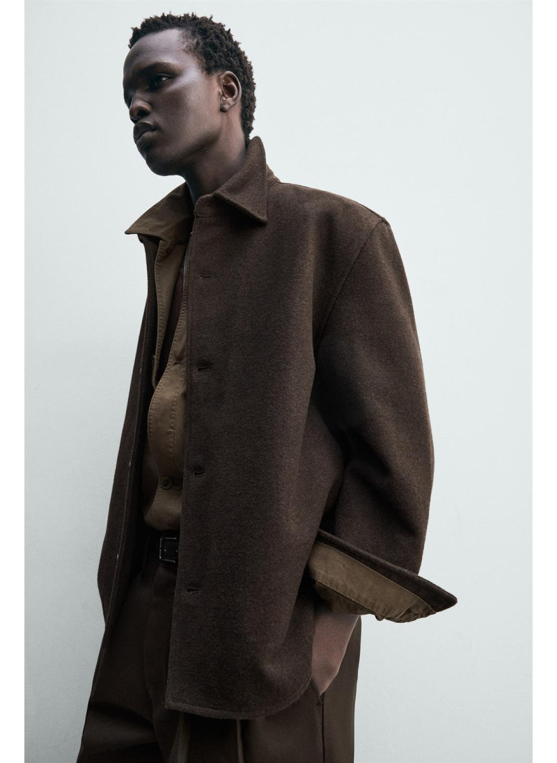 Рубашка-овершерт с регулярной посадкой из шерстяной смеси. Имеет воротник-ревер, длинные рукава с пуговицами на манжетах и боковые карманы на бедрах. Застегивается на пуговицы спереди.