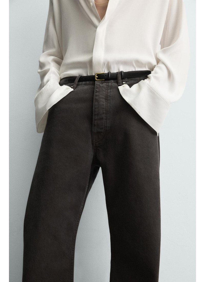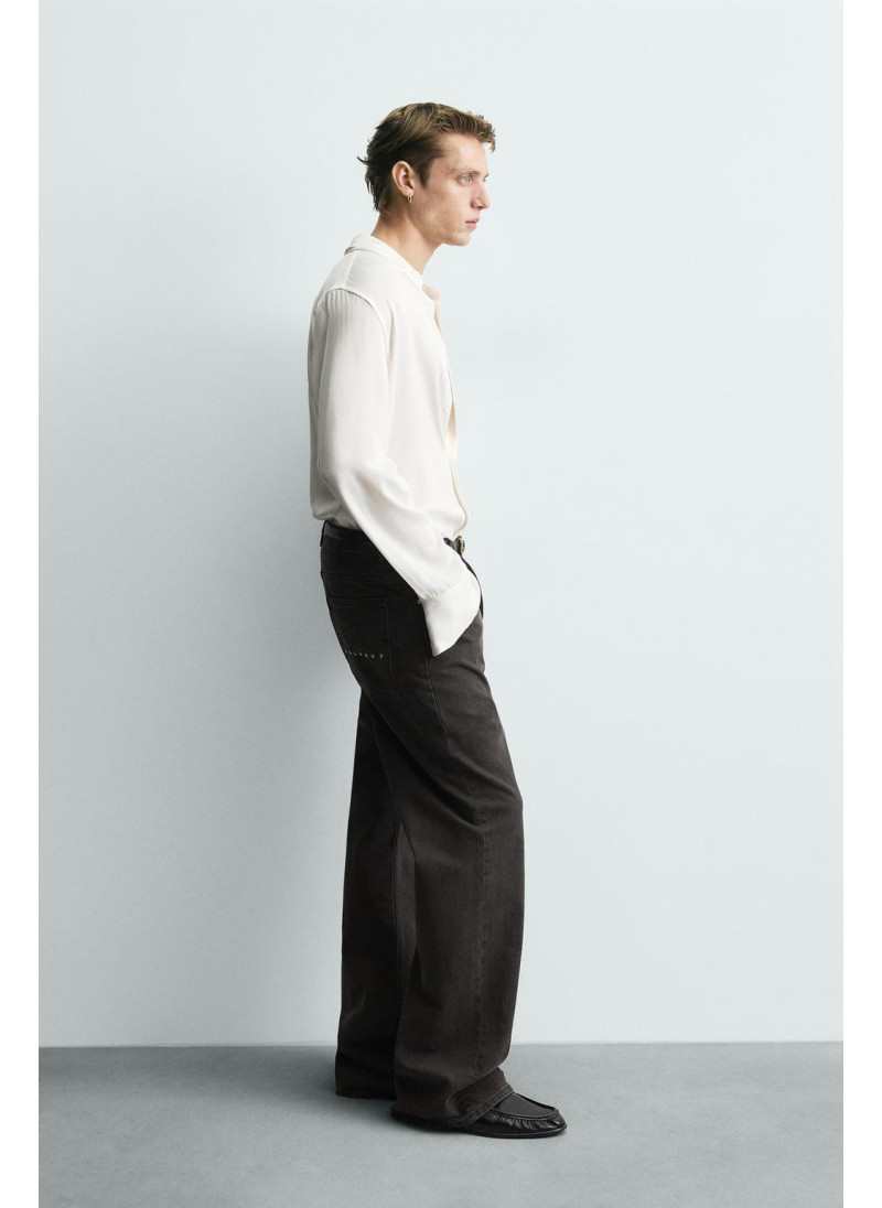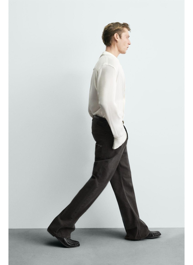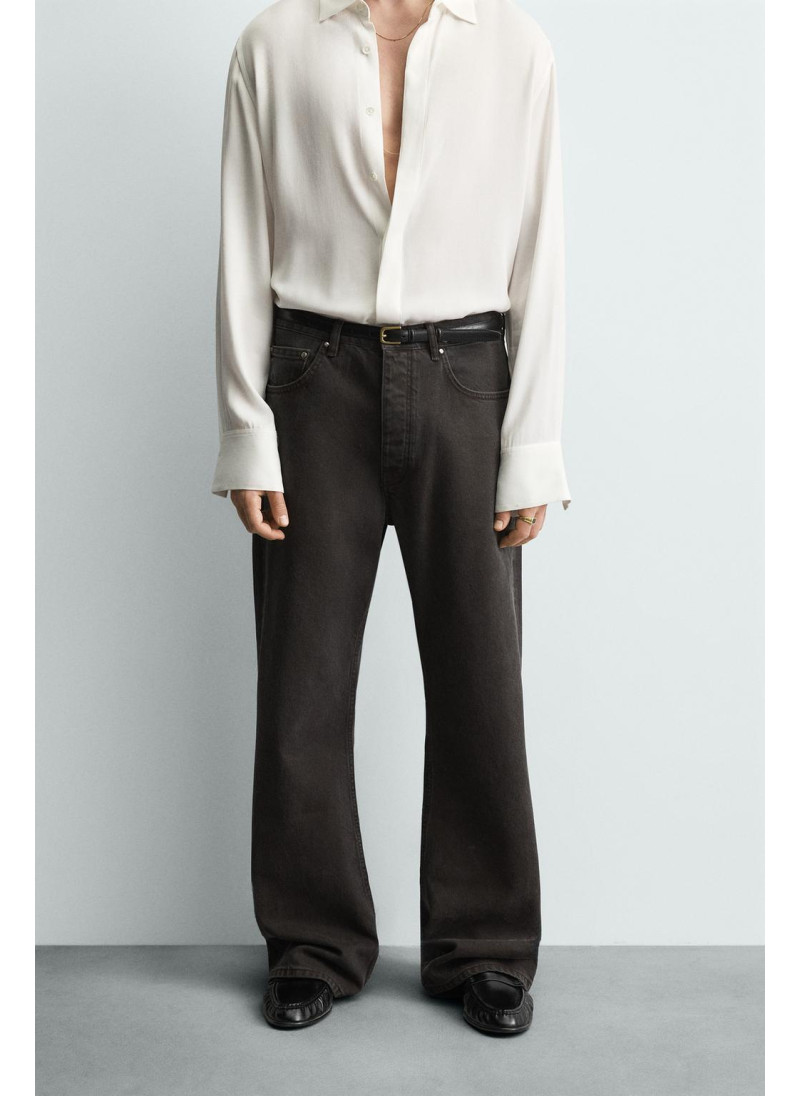 Облегающие сверху и расширяющиеся книзу от колена. Средняя посадка. Жесткая ткань. Джинсы с расширяющимися до низу штанинами из хлопкового денима с восковым эффектом. Пять карманов. Молния и застежка на пуговицу...