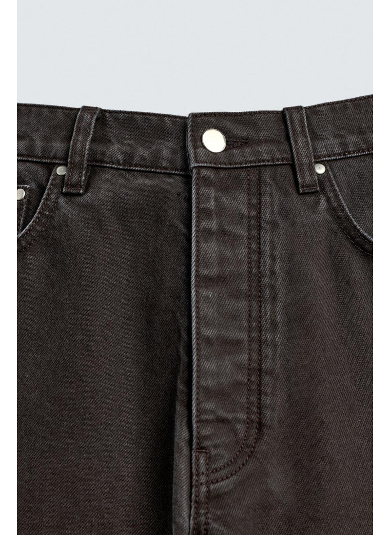 Облегающие сверху и расширяющиеся книзу от колена. Средняя посадка. Жесткая ткань. Джинсы с расширяющимися до низу штанинами из хлопкового денима с восковым эффектом. Пять карманов. Молния и застежка на пуговицу.