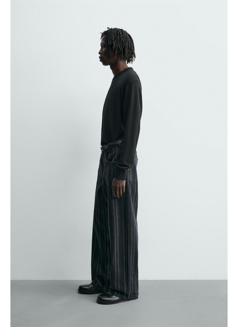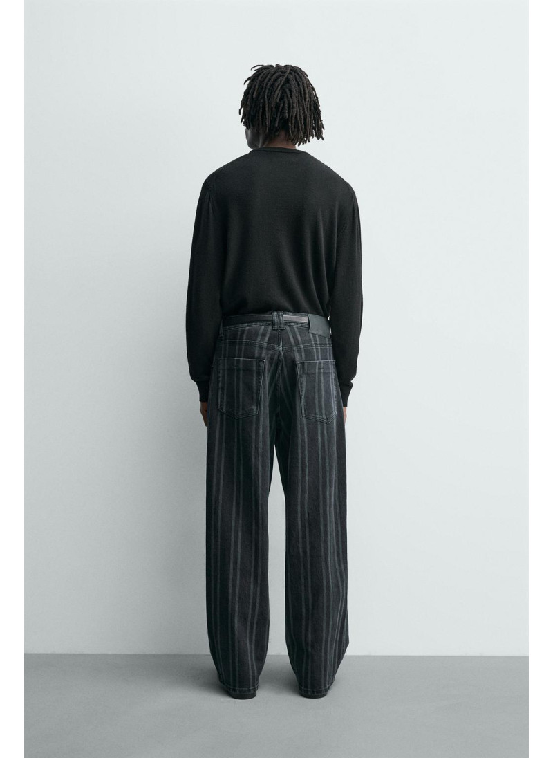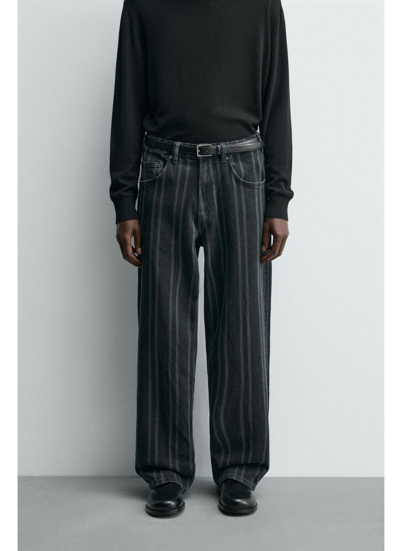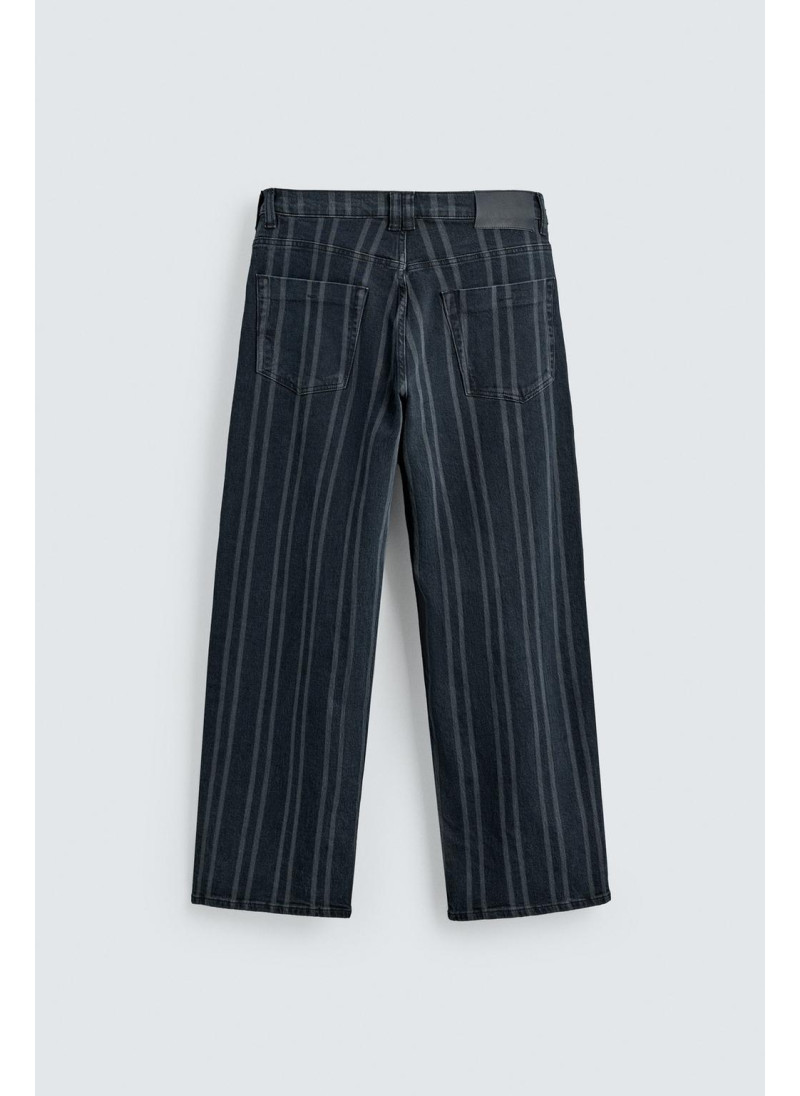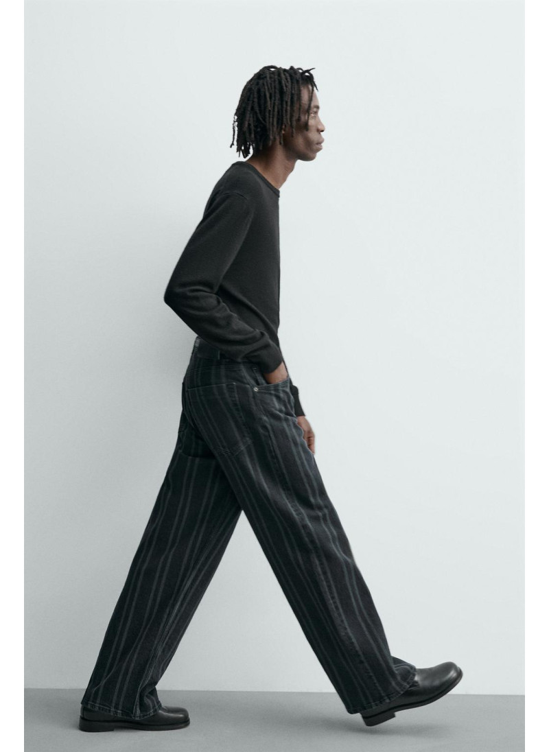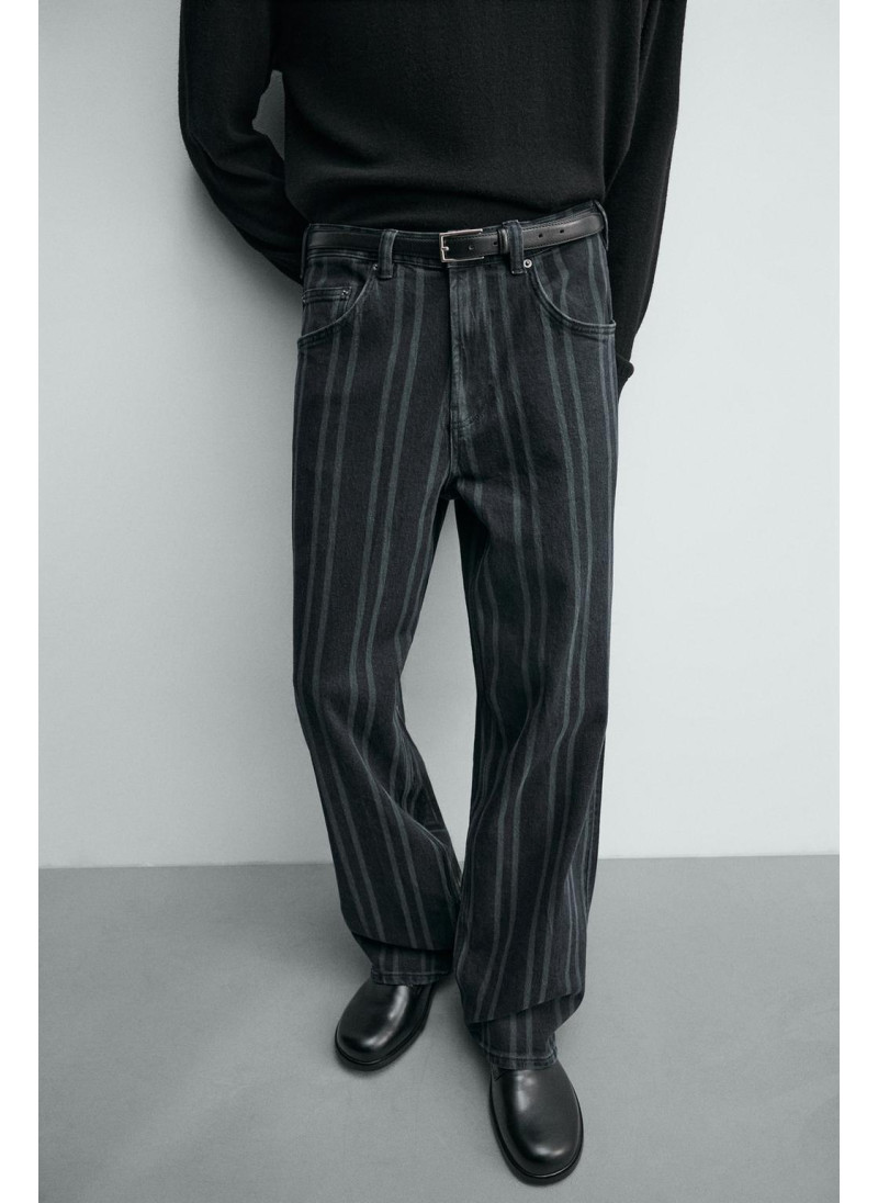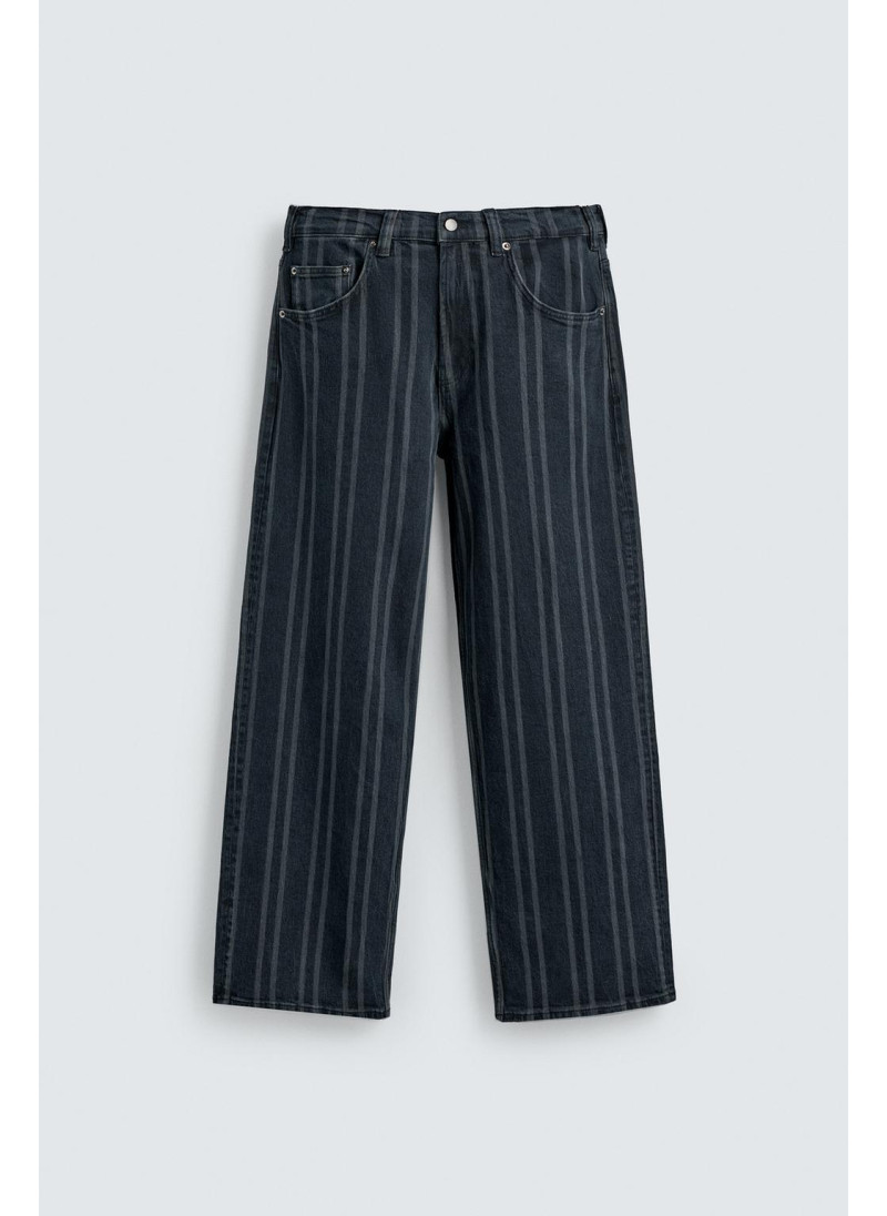 Джинсы свободного кроя из хлопкового денима. Пять карманов. Размытый эффект полосатого принта. Молния и пуговицы.