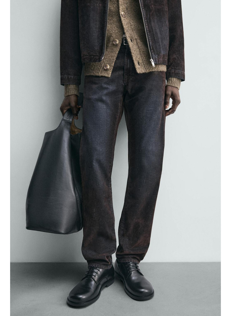 Прямые по линии бедер и ноги, с более свободной посадкой, чем у классических прямых джинсов. Средняя посадка. Жесткая ткань. Джинсы средней свободы из хлопковой ткани с эффектом мягкого бархата. Пять карманов. Молния и пуговицы для застежки...