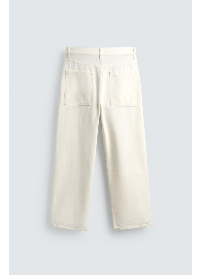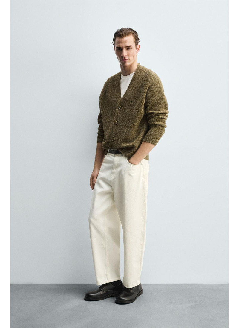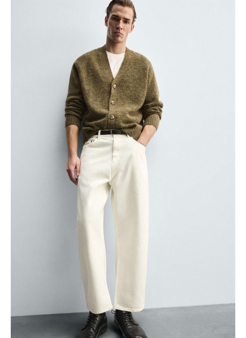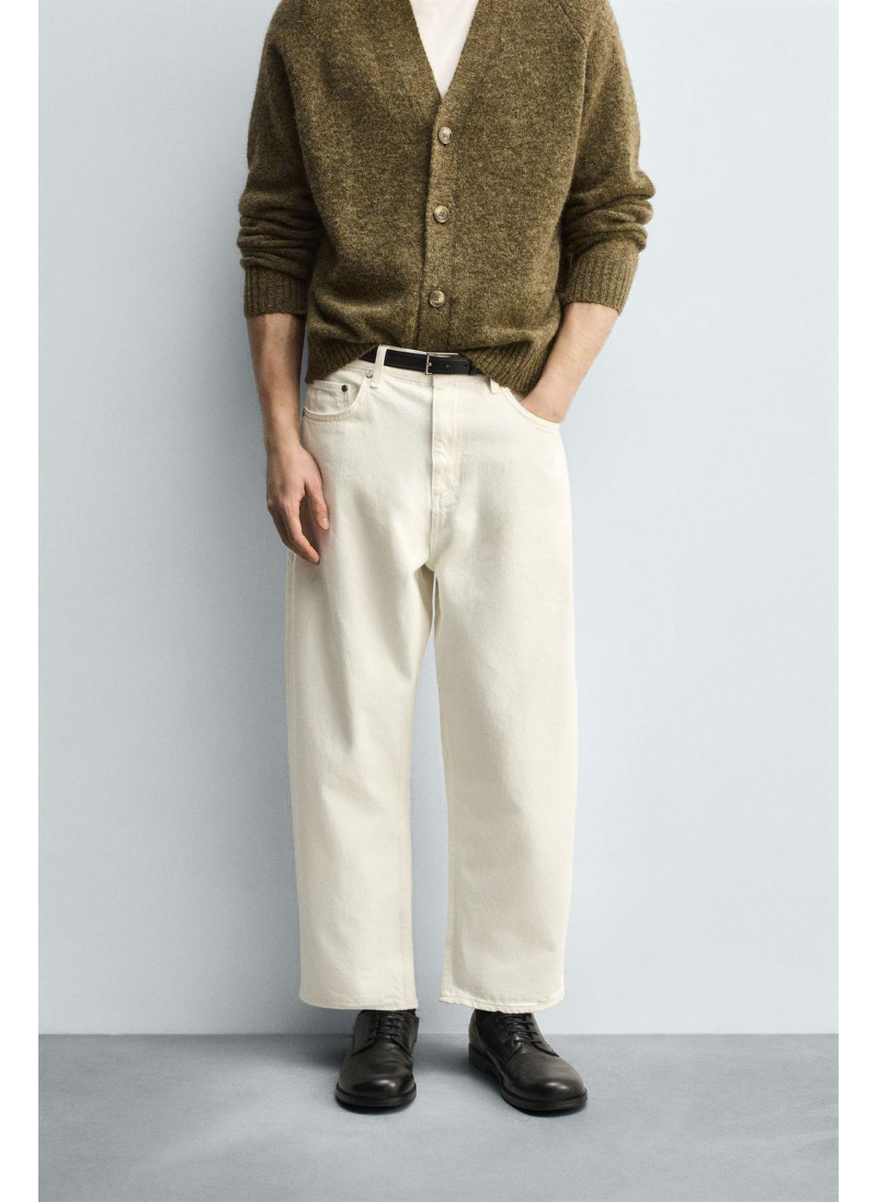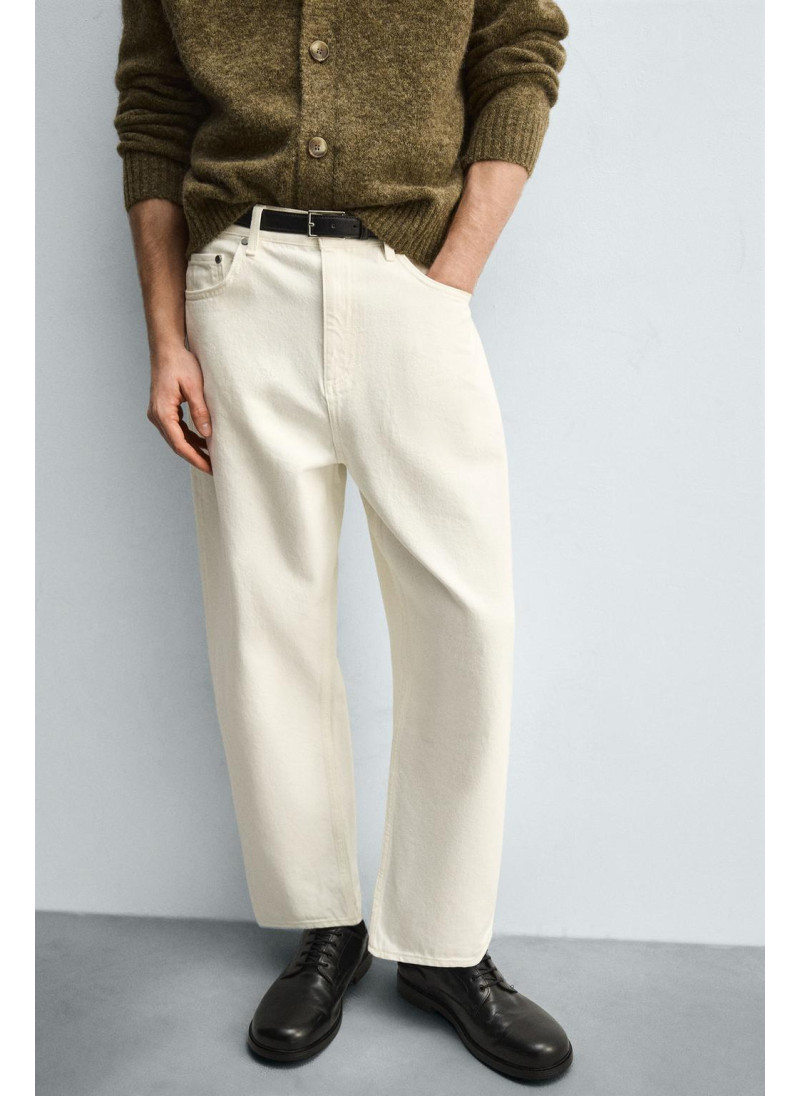 Высота модели: 188 cm Джинсы Tapered wide fit. Свободный крой от бедра с легким сужением книзу. Средняя посадка. Плотная ткань. Пять карманов. Эффект потертости. Застежка-молния и пуговица спереди...