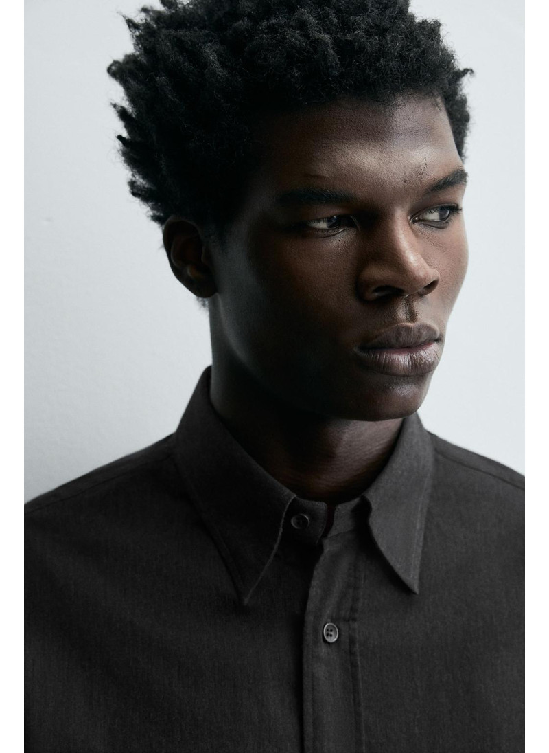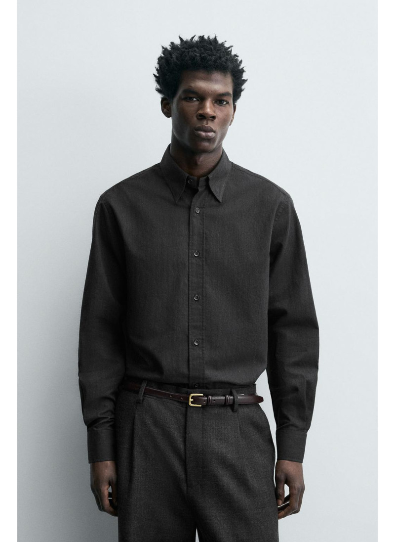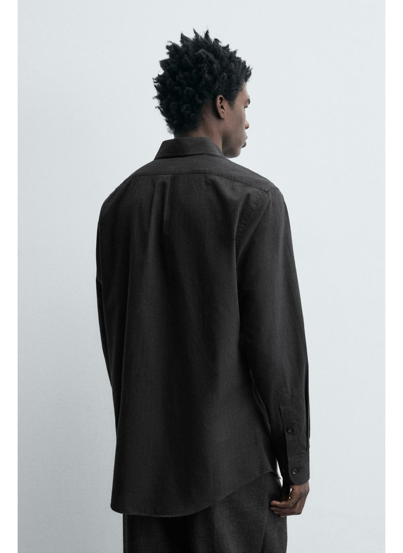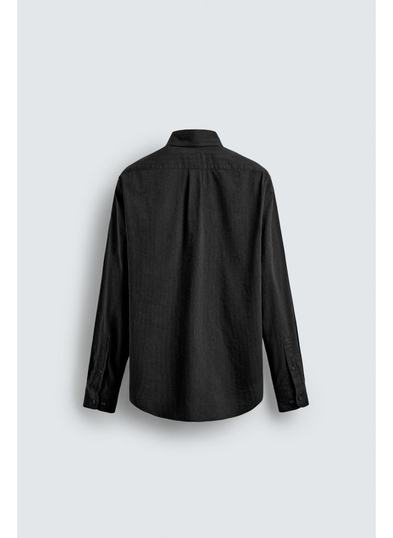 Рубашка свободного кроя из легкого хлопкового материала. Имеет внутренний отложной воротник и длинные рукава с застежкой на пуговицы. Застегивается на пуговицы спереди.