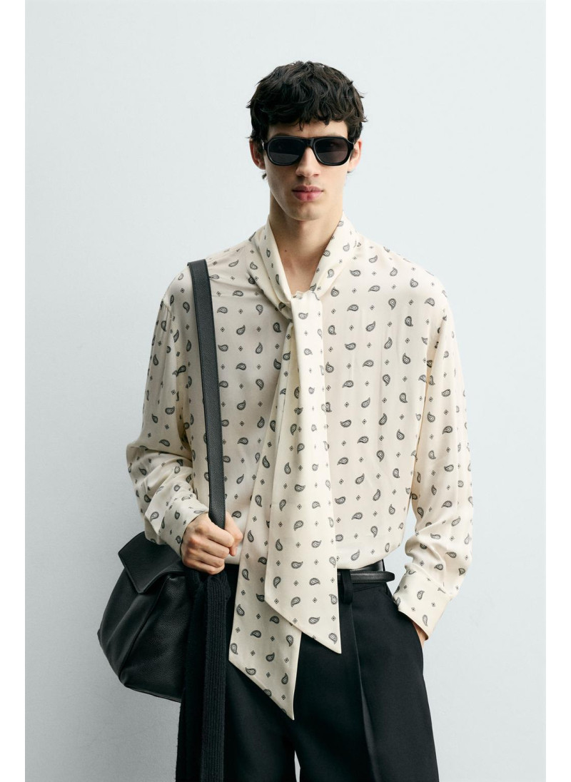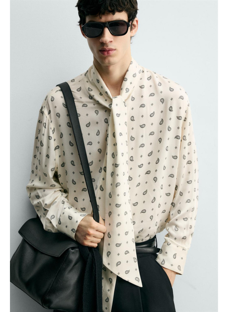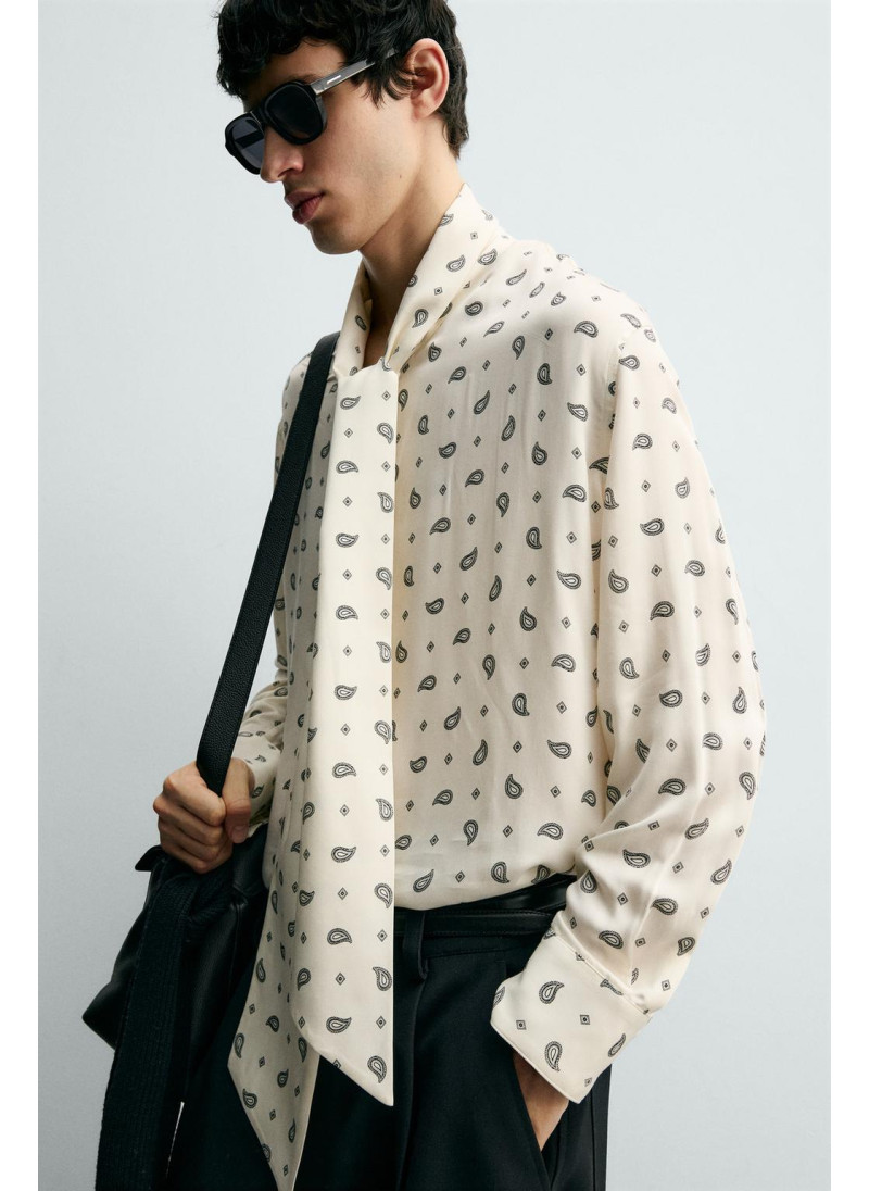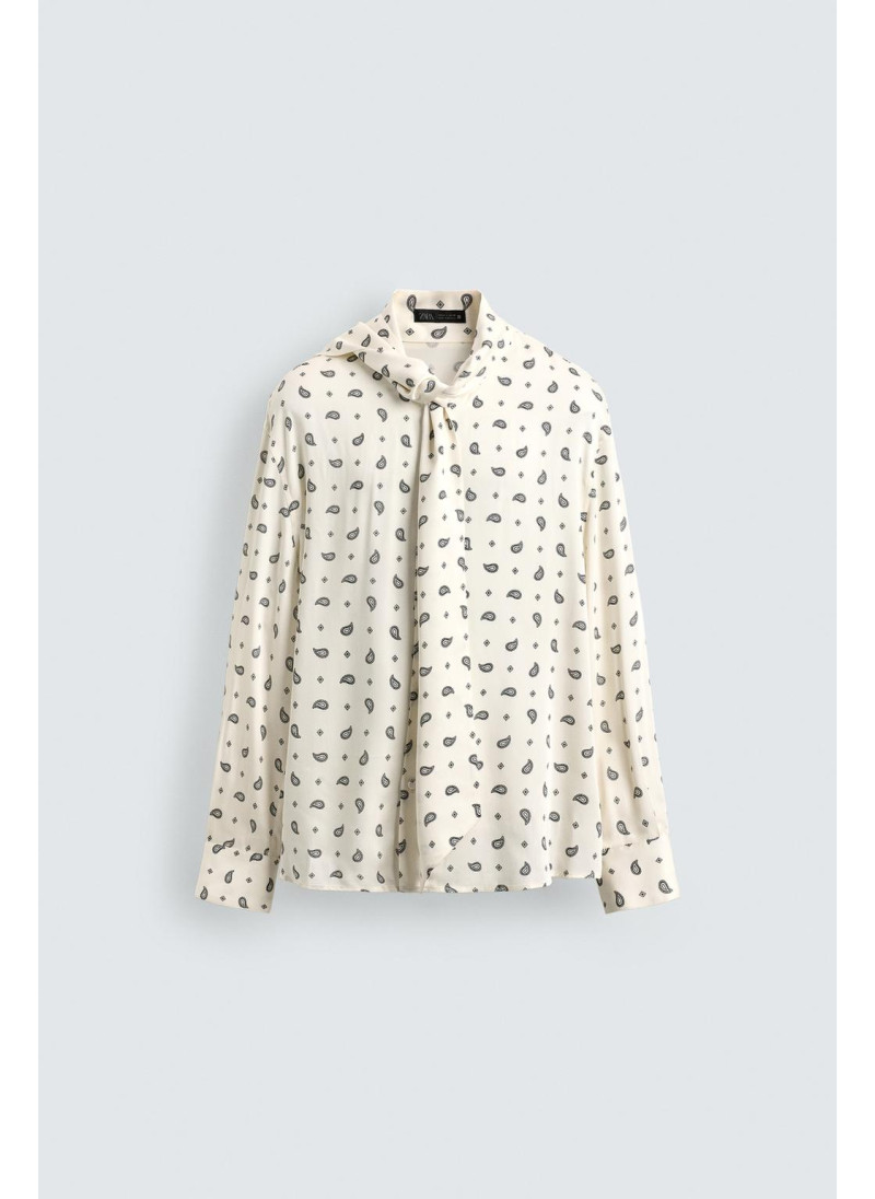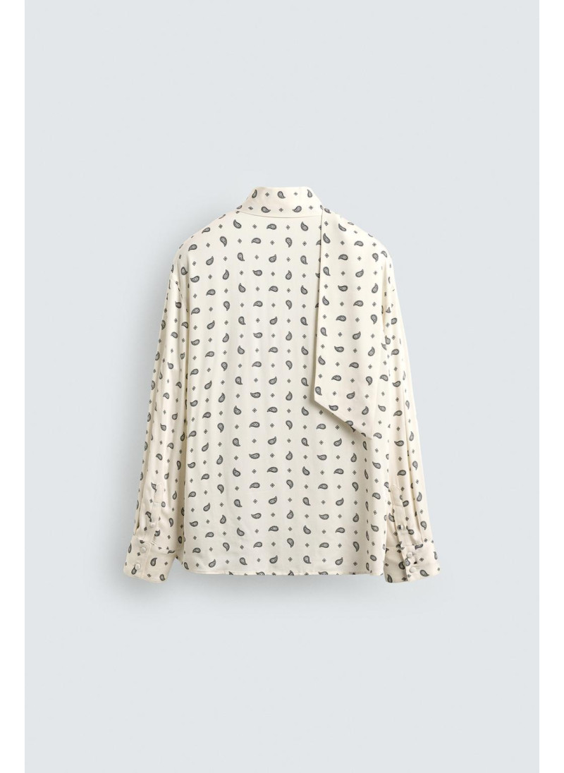 РУБАШКА С ПРИНТОМ «ПЕЙСЛИ» И БАНТОМ