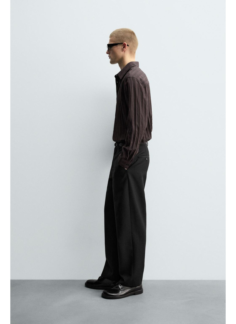 Высота модели: 189 cm | Размер: L Рубашка свободного кроя из струящейся ткани с добавлением вискозы. Итальянский воротник и длинные рукава с манжетами на пуговицах. Застежка на пуговицы спереди...