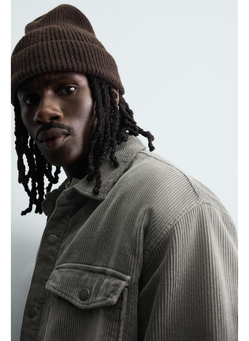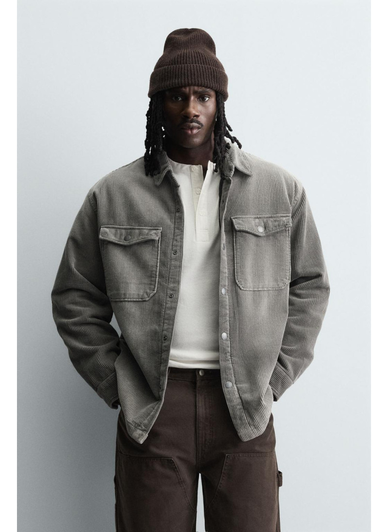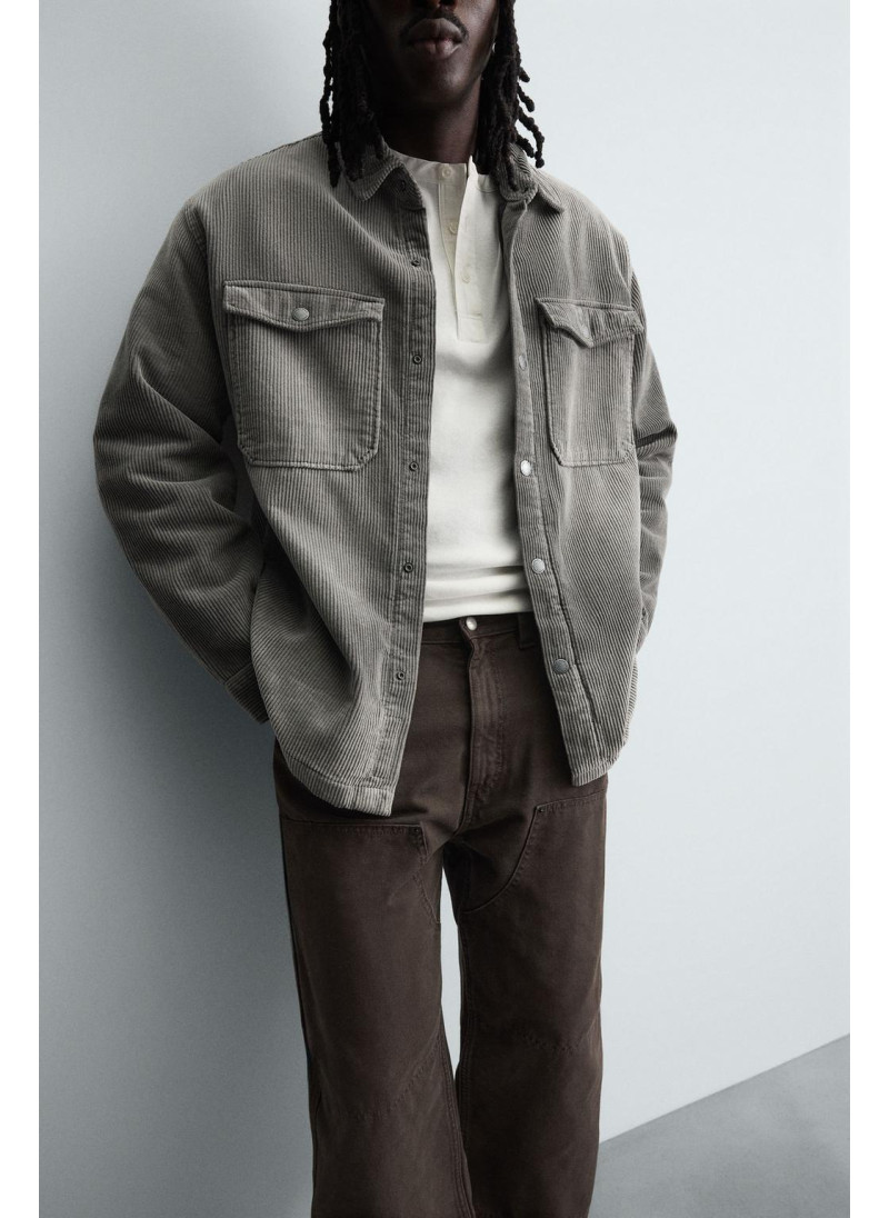 Высота модели: 183 cm | Размер: M Куртка-рубашка свободного кроя из хлопкового вельвета со стеганой подкладкой. Отложной воротник и длинные рукава с манжетами на пуговицах. Нагрудные накладные карманы с клапанами, боковые карманы на бедрах. Эффект потертости. Застегивается на пуговицы...