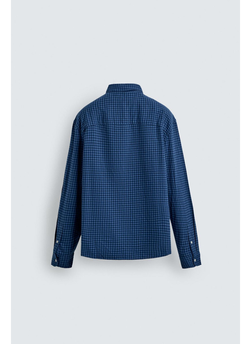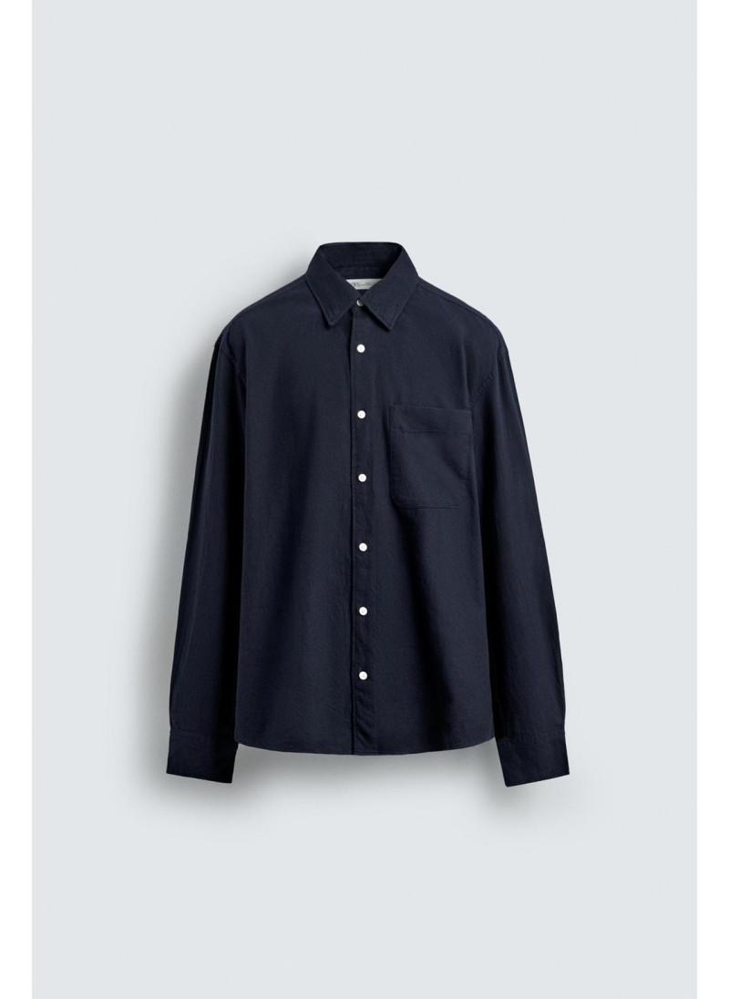 Рубашка свободного кроя из хлопковой ткани с финишной отделкой из фланели. Она имеет воротник, длинные рукава с пуговицами на манжетах, нагрудный карман, и застежку на пуговицы...