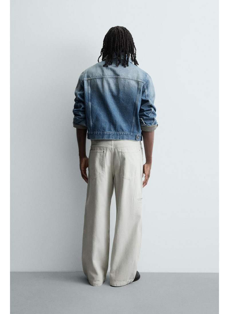 Джинсы свободного кроя, расширяющегося по всей длине ноги. Средняя посадка. Плотная ткань. Пять карманов. Прорезной карман на штанине. Эффект потертости. Застежка-молния и пуговица...