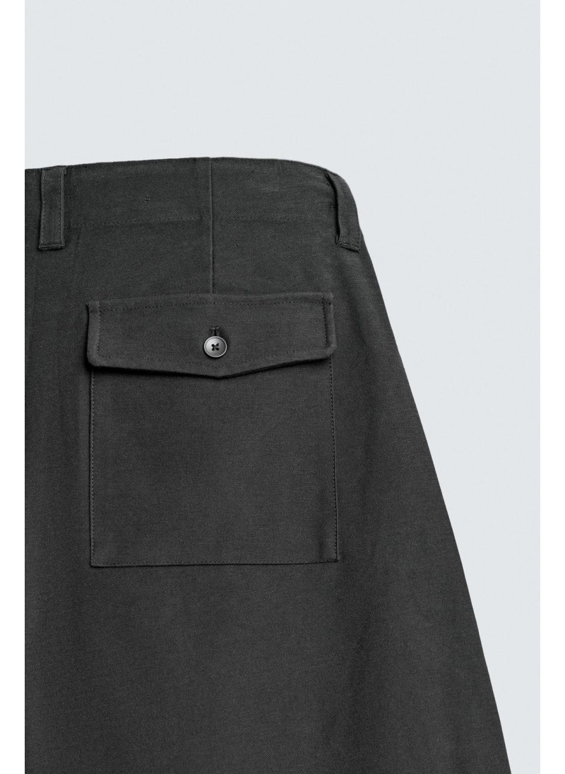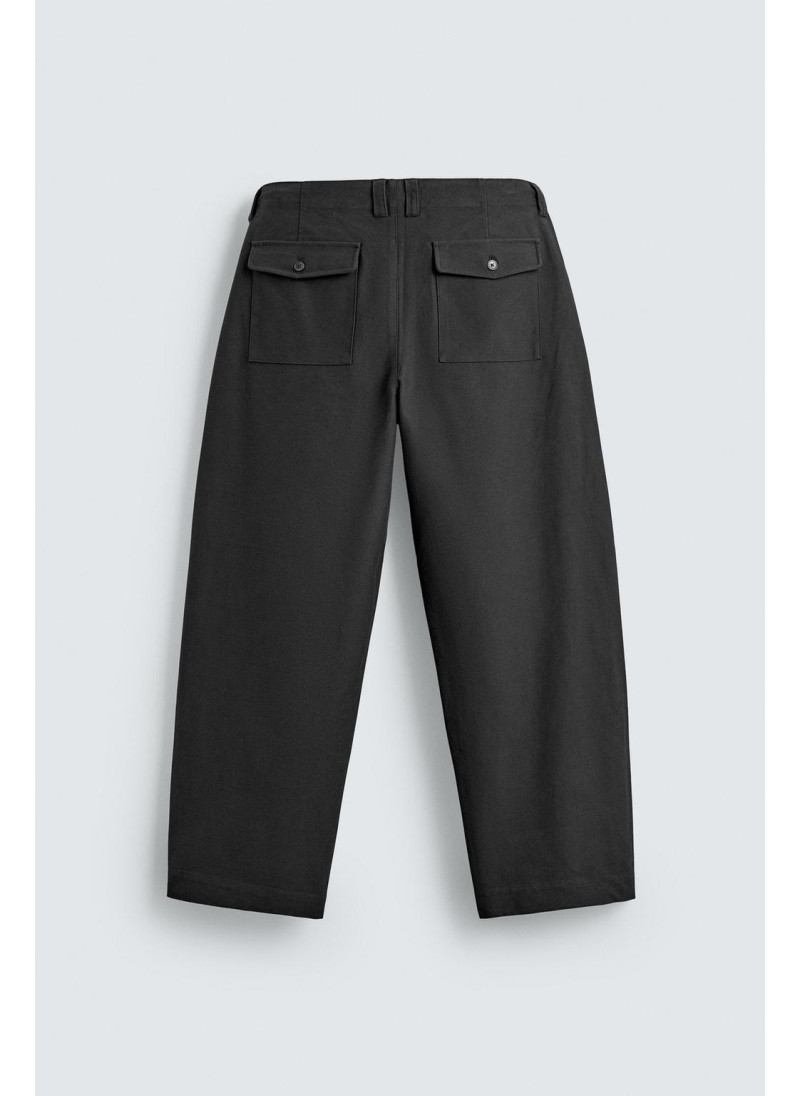 Брюки свободного кроя. Имеют передние накладные карманы и задние клапанные карманы. Застежка на молнию и пуговицу...