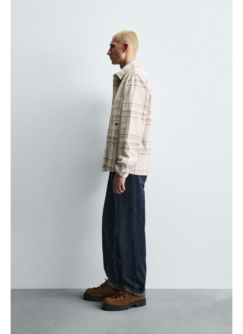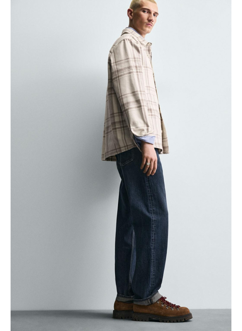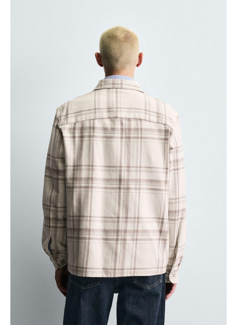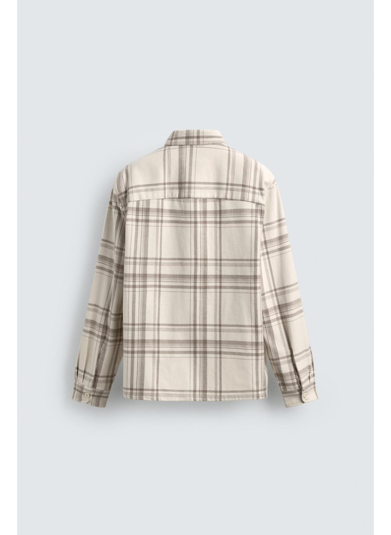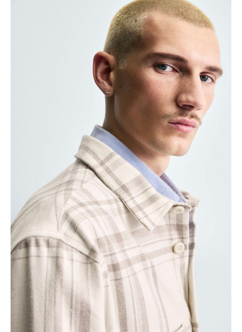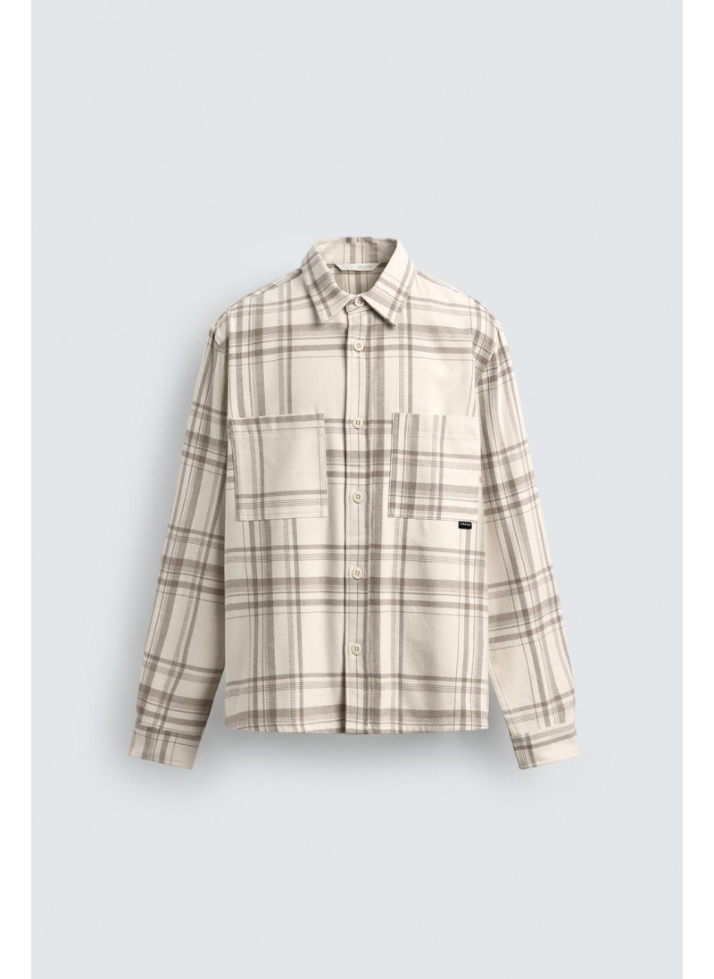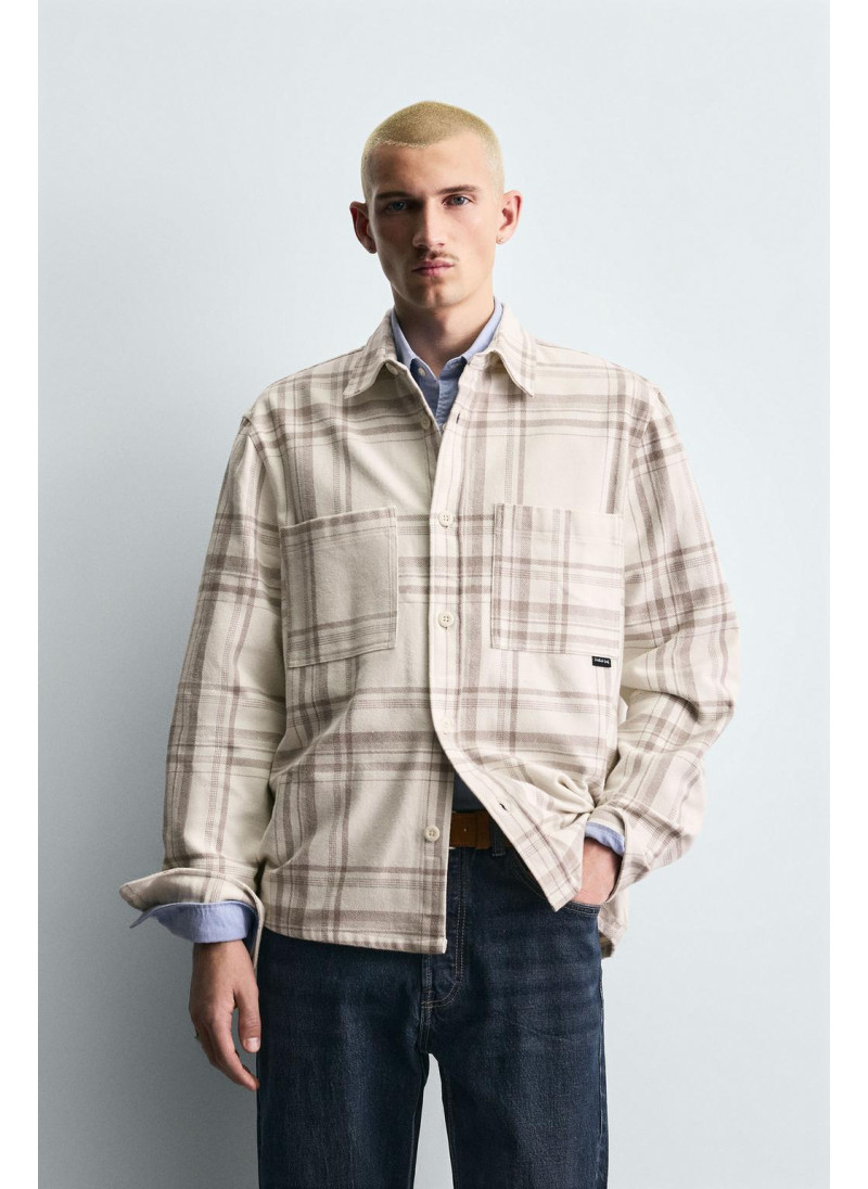 Рубашка свободного кроя из хлопковой ткани с ворсистой отделкой. Имеет воротник рубашки и длинные рукава с пуговицами на манжетах. Украшена нашивными карманами на груди. Застегивается на пуговицы спереди...