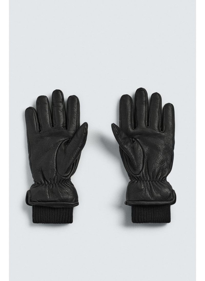 Кожаные перчатки. Подкладка из трикотажа. Эластичная резинка на запястье. Отделка в рубчик.
