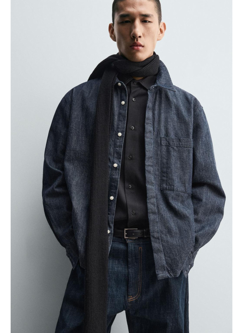 Рубашка свободного кроя из немытого хлопкового денима. Это придает ей жесткий внешний вид на первых порах, который со временем смягчится от носки. Особенности: лацканный воротник, длинные рукава с застежкой на пуговицы. Есть нагрудный карман. Застежка спереди на скрытые пуговицы...