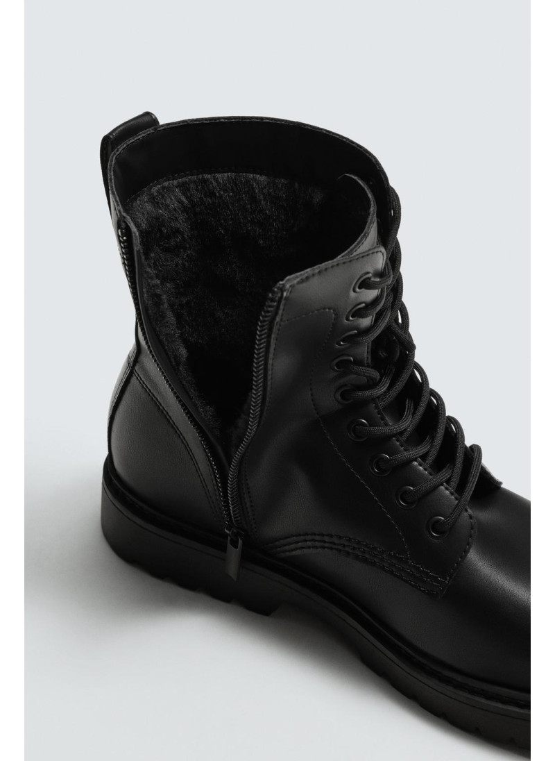 Дерби на шнуровке. Гладкий верх. Искусственный мех подкладки. Боковая молния. Круглый носок. Массивная трековая подошва.