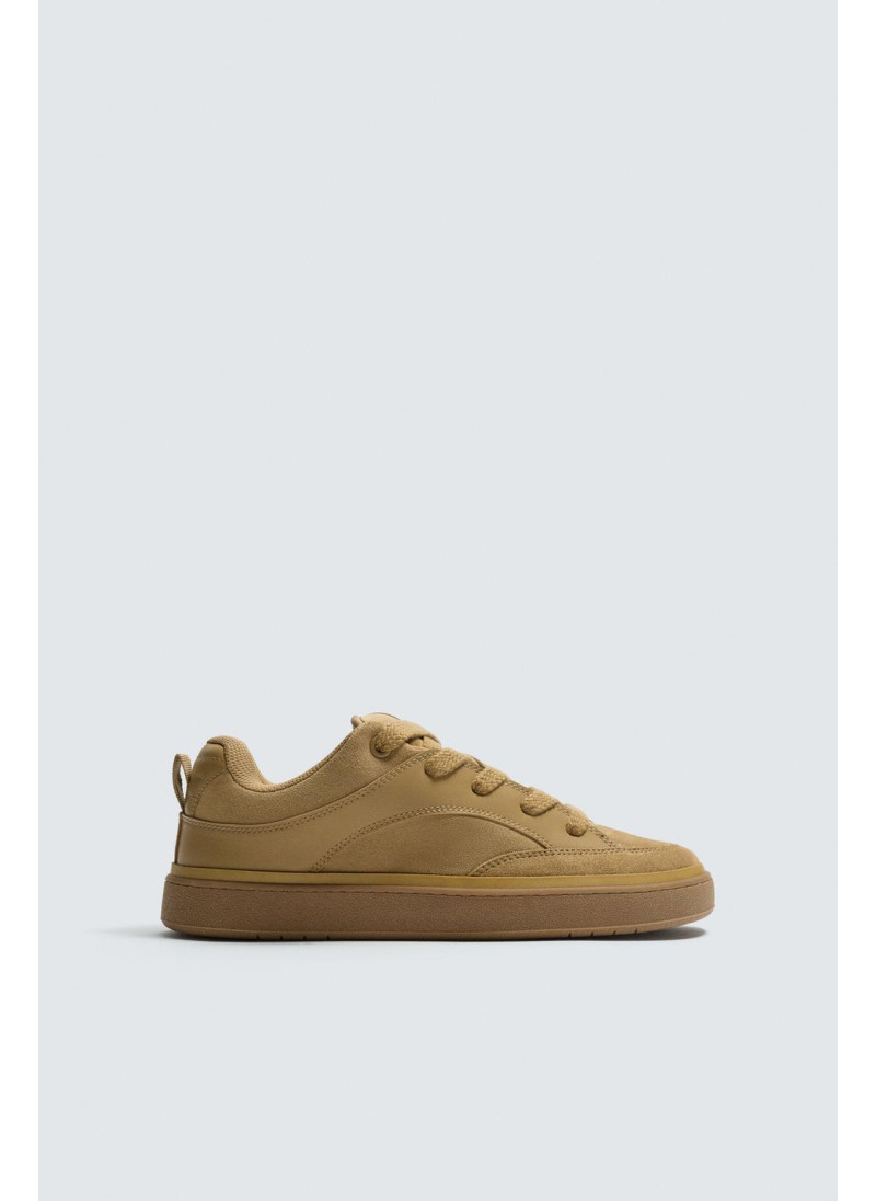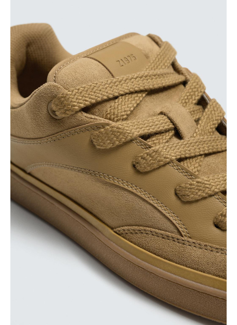 Кроссовки на шнуровке. Верх выполнен из комбинации панелей. Макси шнурки. Массивные подошвы.