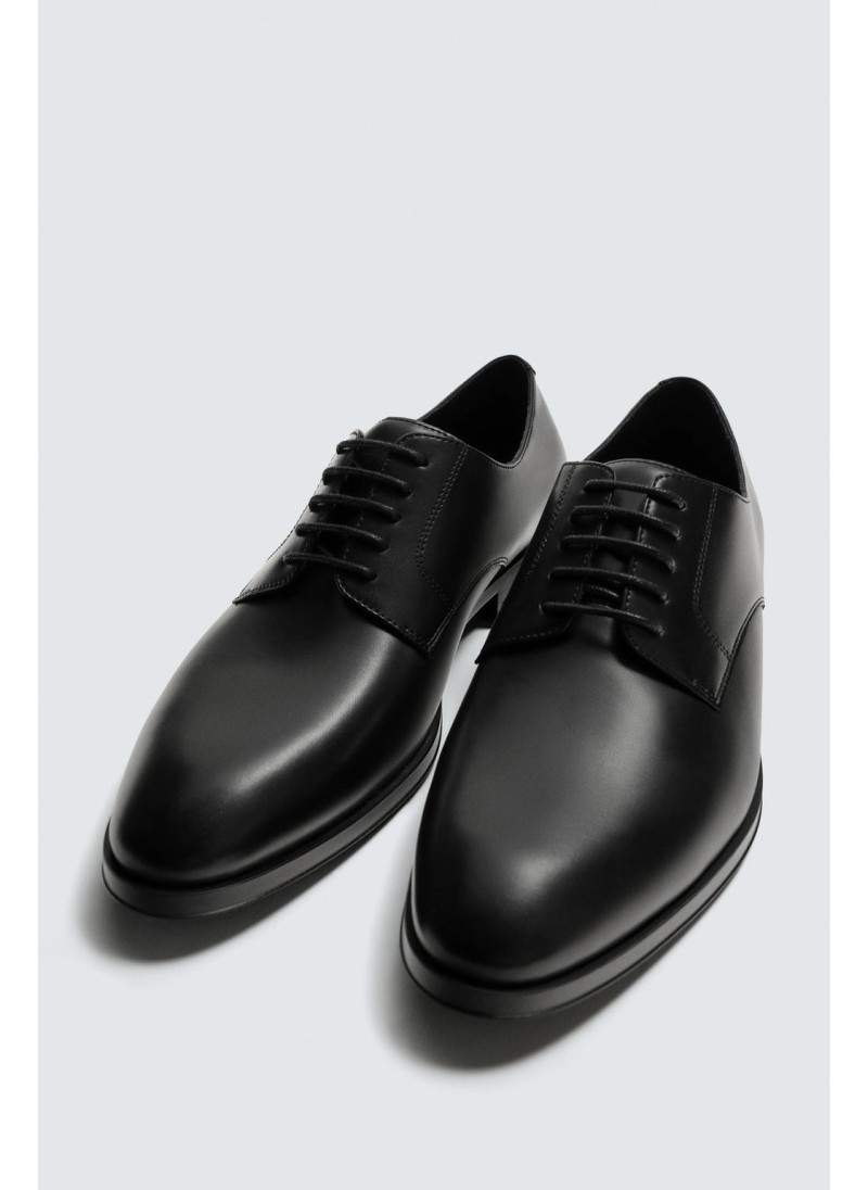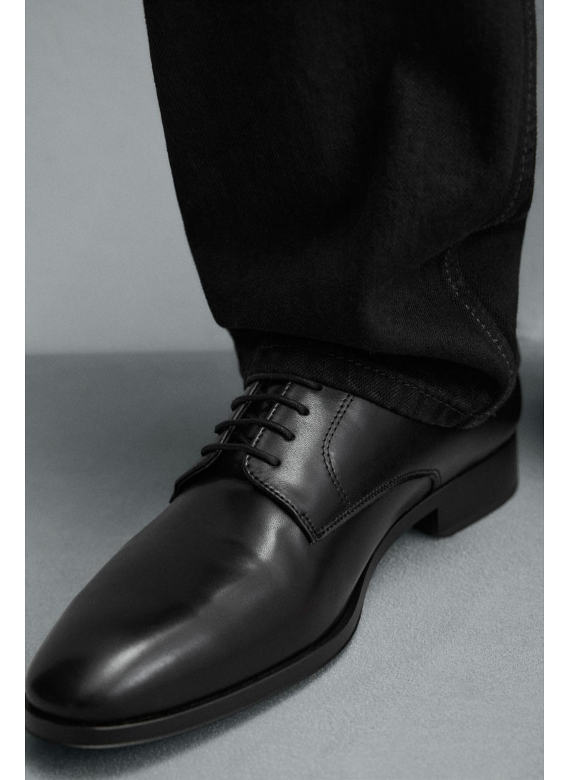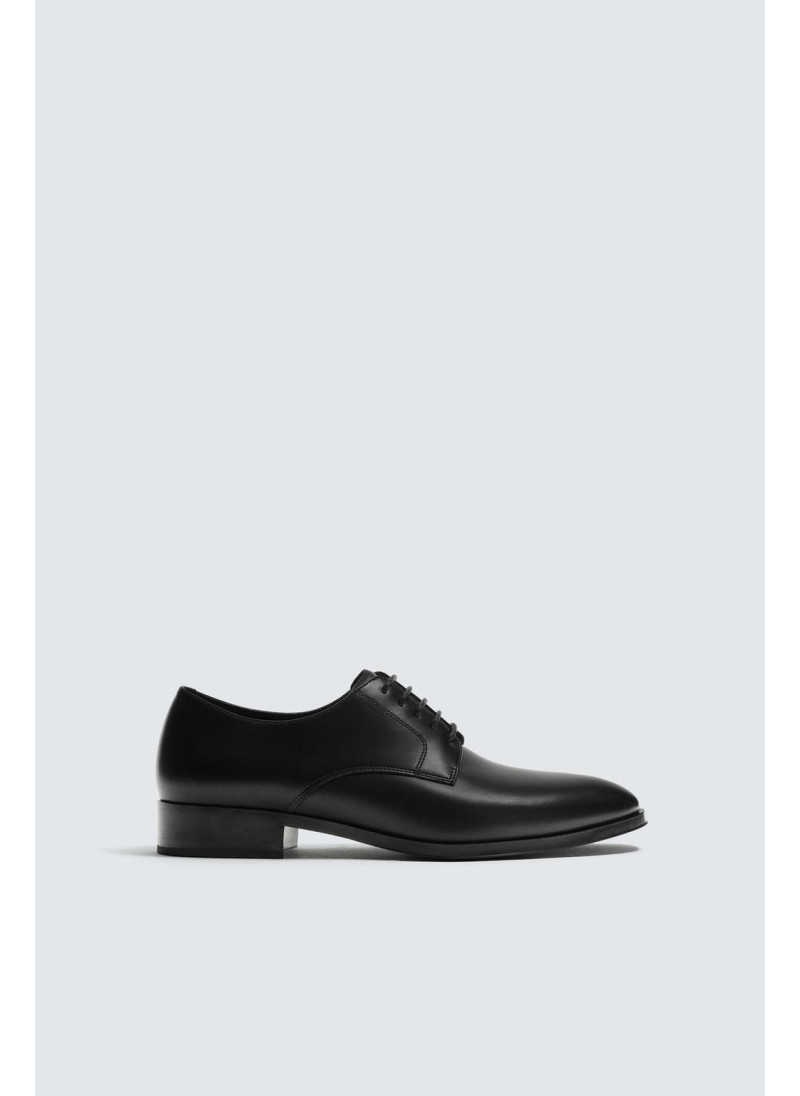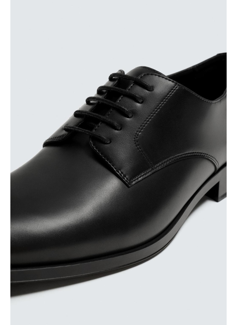 Туфли-дерби. Простая верхняя часть. Круглый носок. Подошва с небольшим каблуком.