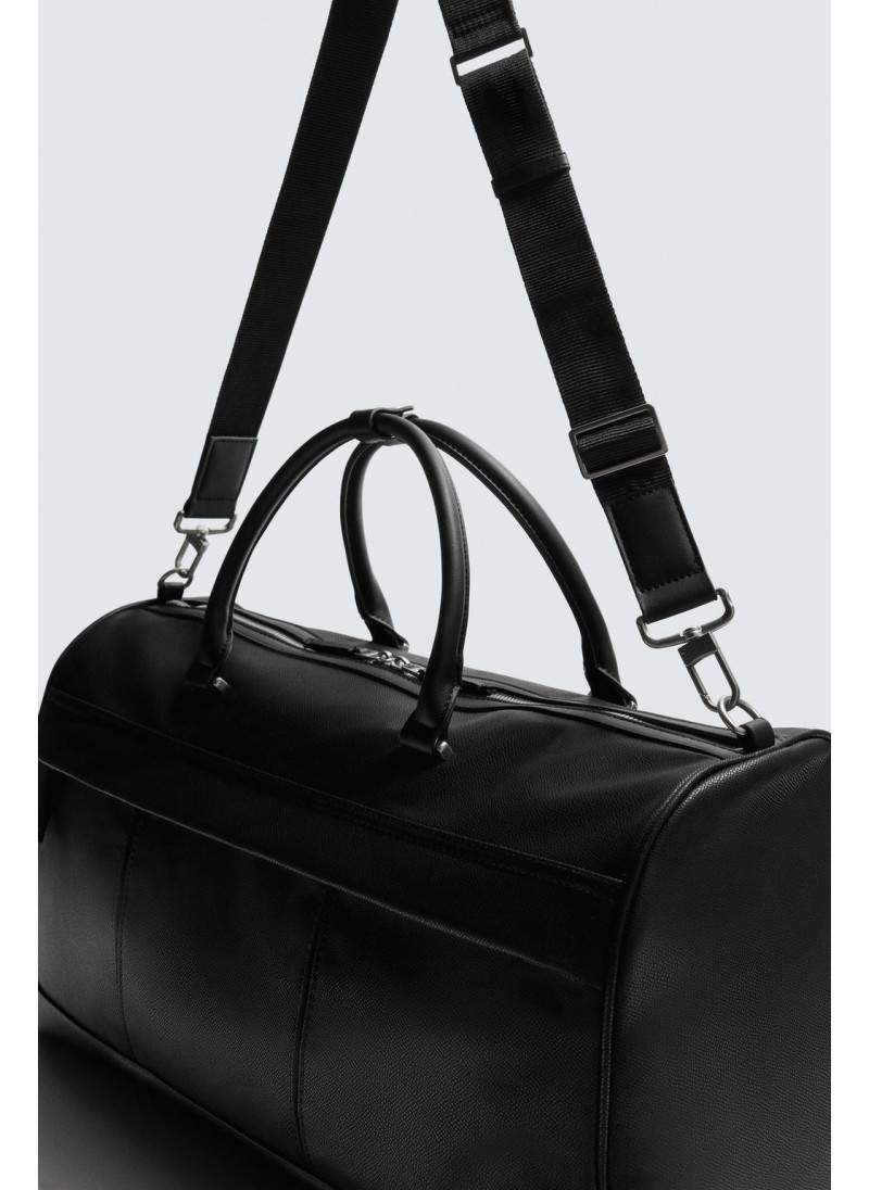 Сумка для путешествий с тисненым покрытием. Основное отделение на молнии. Внутри есть карман на молнии. Спереди есть карман на молнии. Две ручки и регулируемый, съемный плечевой ремень. Размеры: Высота x Длина x Ширина: 30 x 49 x 32 см.