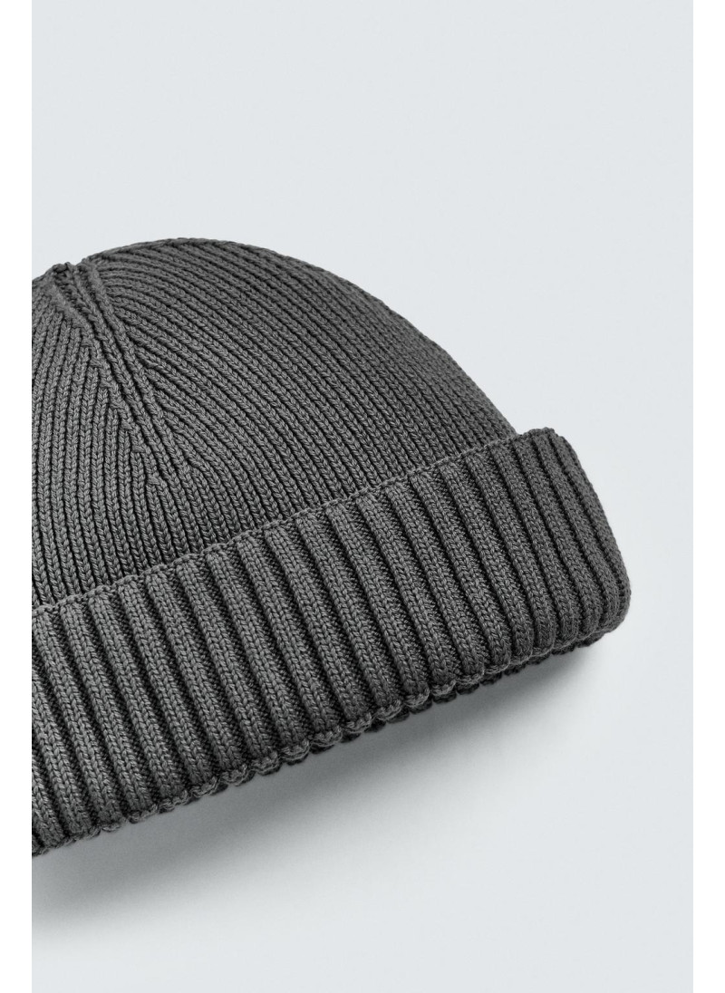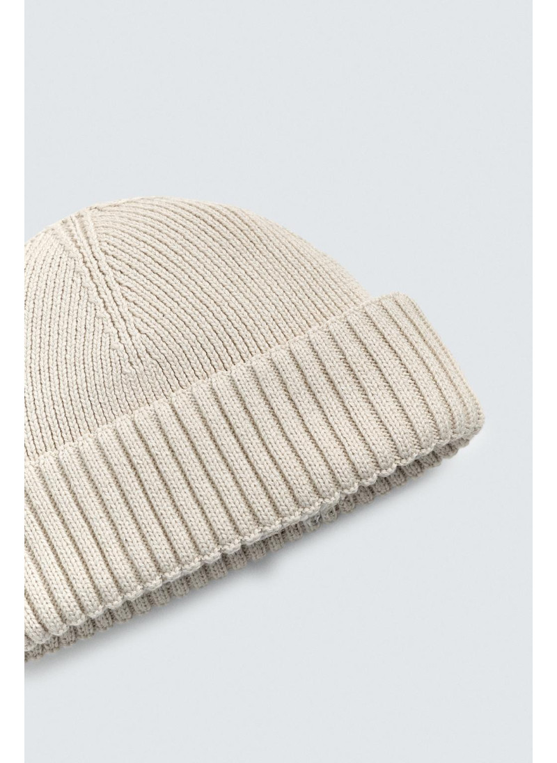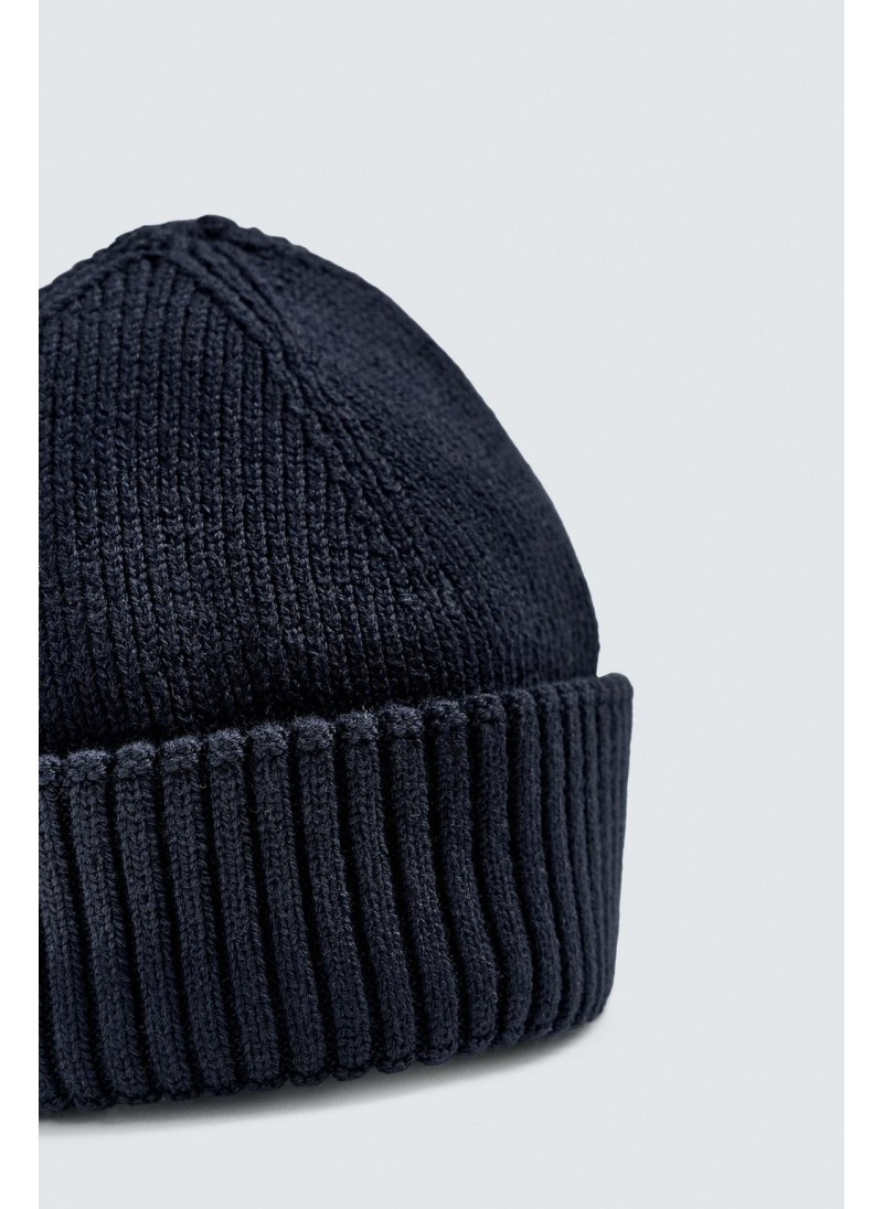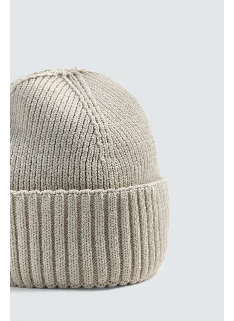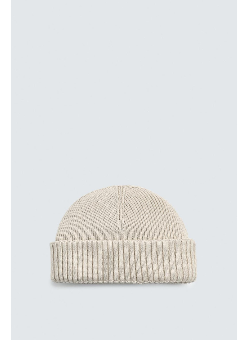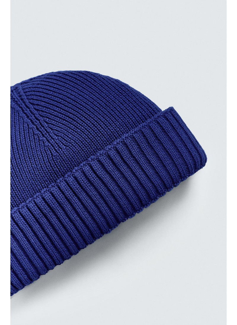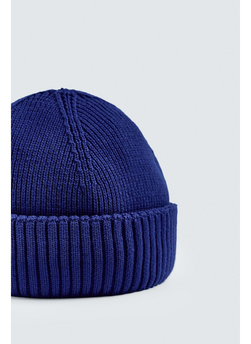 Короткая вязаная шапка из хлопковой смесовой пряжи. С отворотом...